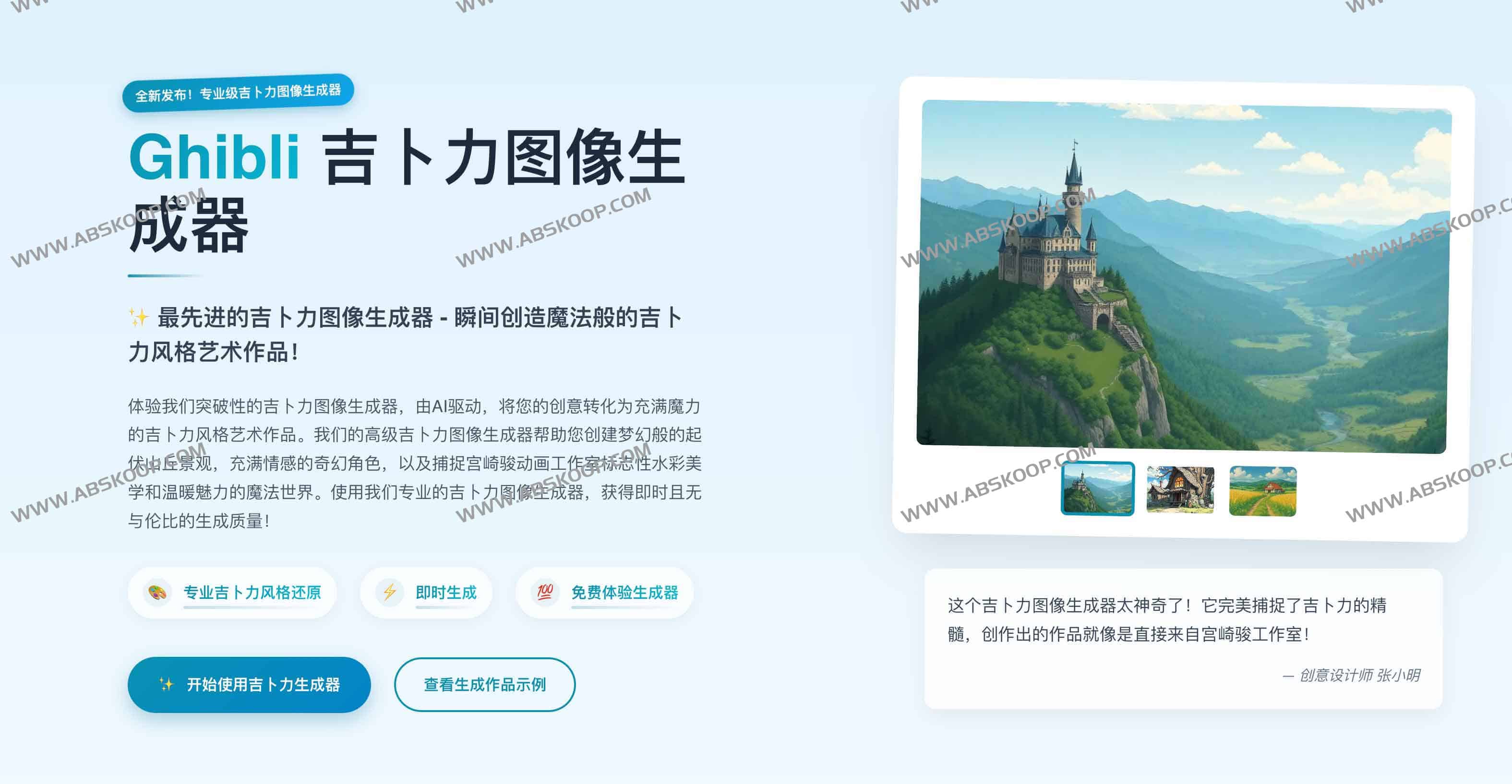 最先进的吉卜力图像生成器 – 瞬间创造魔法般的吉卜力风格艺术作品!