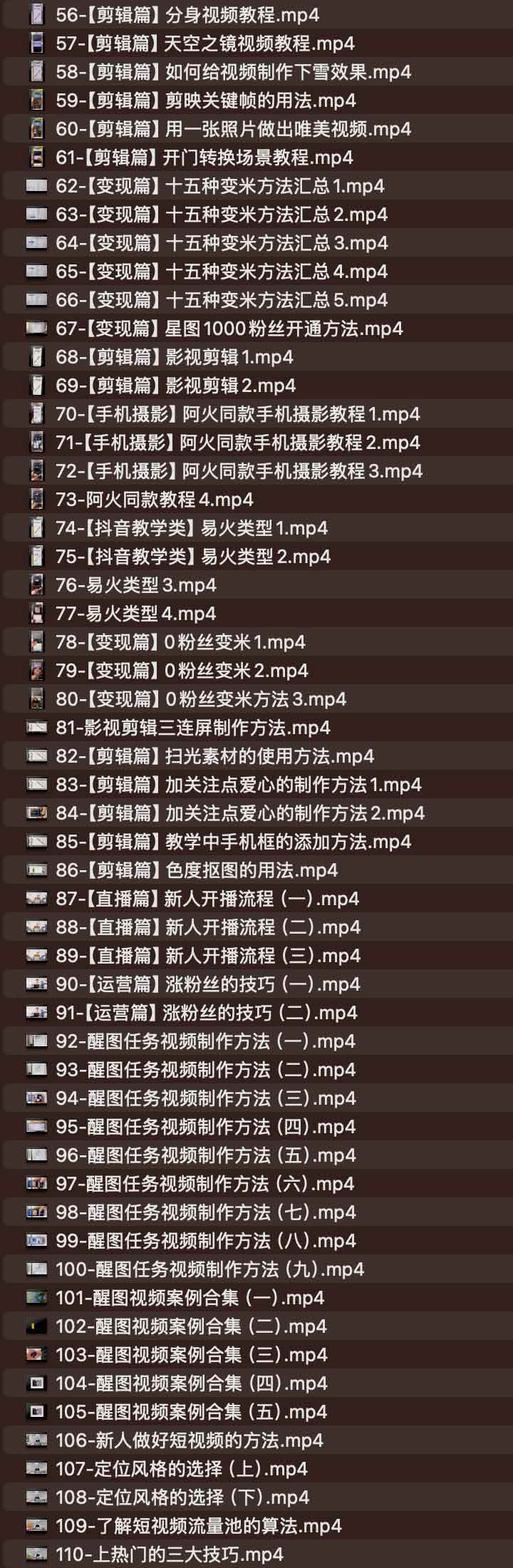 阿火精选手机拍摄剪辑运营实操,夸克网盘课程。本课程体系由阿火精心打造,涵盖了短视频创作的各个环节,适合零基础学员逐步掌握从拍摄到变现的全流程技能。课程还提供了影视剪辑、手机摄影、直播流程、涨粉技巧等实用内容,全面提升学员的短视频创作与运营能力。通过系统学习,学员将掌握短视频拍摄、剪辑、运营、变现的核心技能,打造高质量内容,实现从新手到达人的转变。