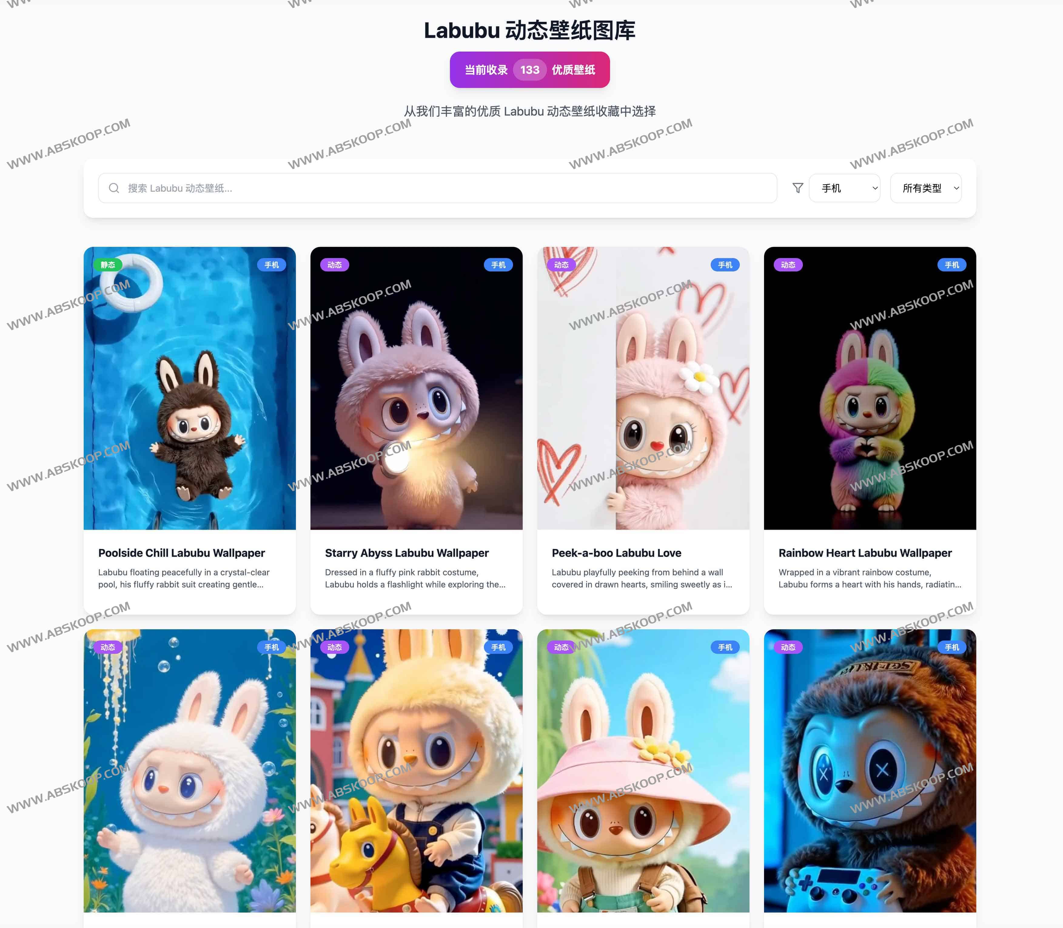 Labubu Live Wallpaper是一个在线免费优质 Labubu 动态壁纸下载收藏网站,专注提供高质量 Labubu 动态壁纸的网站,用户可以免费获取精心设计的高清动画壁纸,适用于手机、平板与桌面。当前已有 133 款精选壁纸,每一款都拥有流畅动画与令人惊艳的视觉表现,兼顾清晰度与性能优化,确保不会造成设备卡顿或耗电。