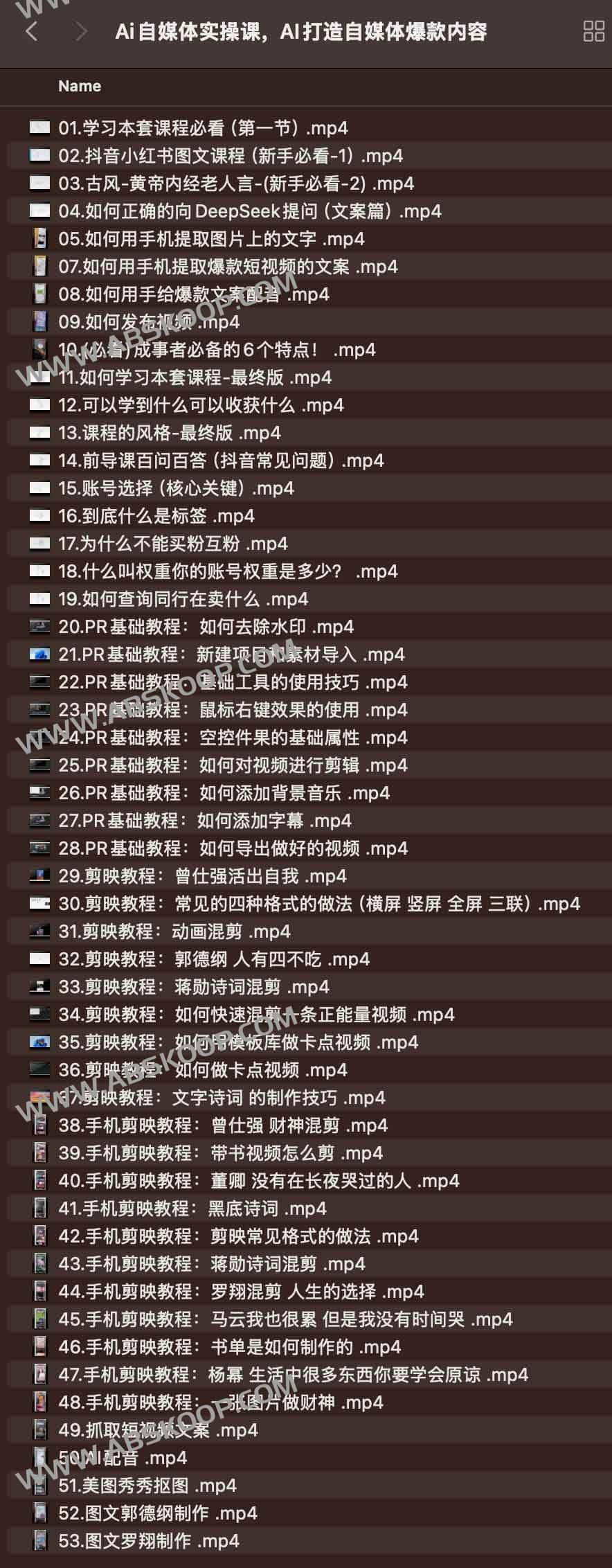 课程不仅涵盖了PR软件从去水印、导入素材到字幕添加、视频导出等基础教程,更详细讲解了手机端剪映操作,包括动画混剪、卡点视频制作、书单视频的精细操作技巧,内容丰富且简单易学,真正做到零基础也能快速上手。