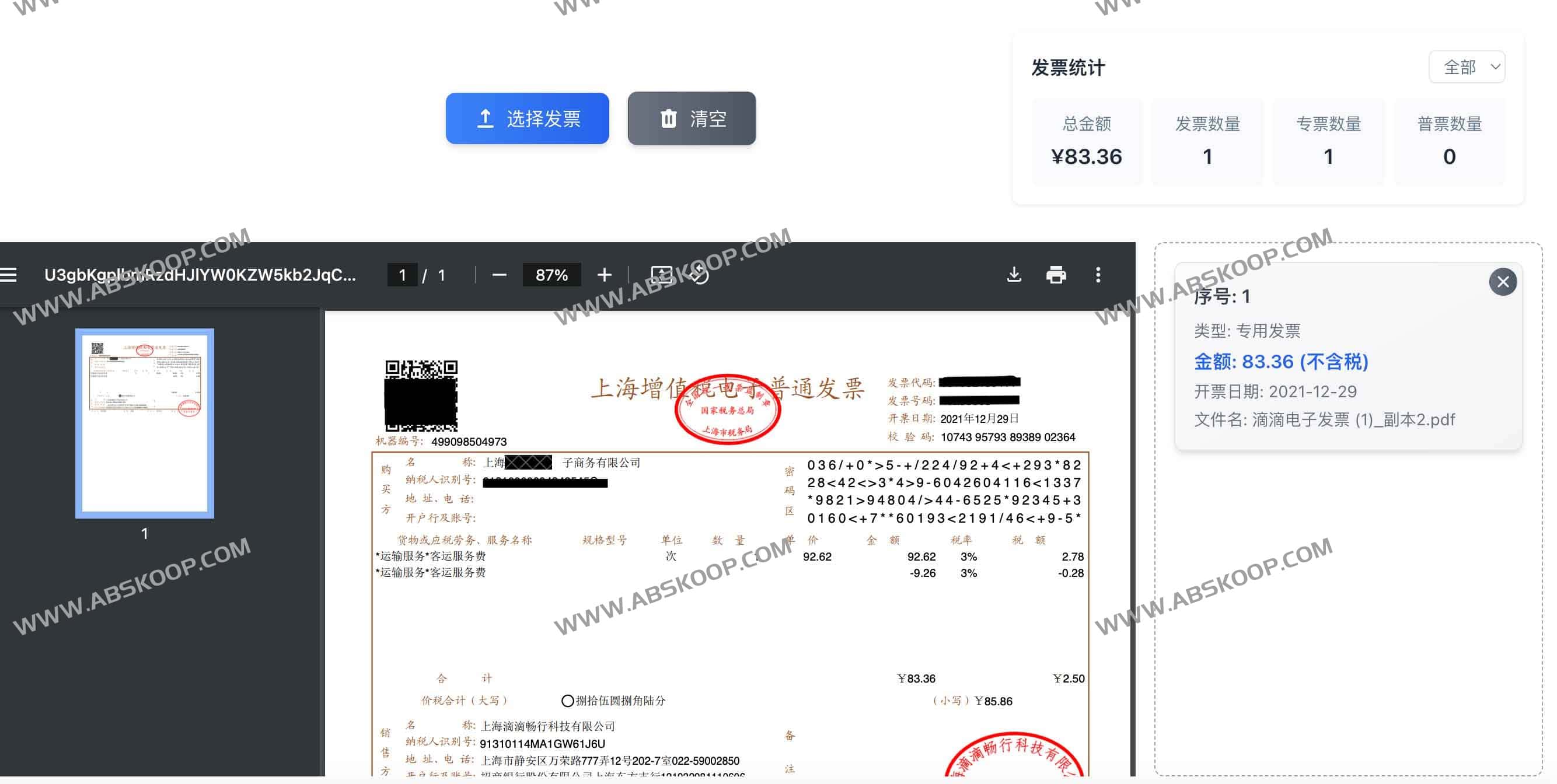 - 实时汇总所有发票总金额,提供参考性统计数据