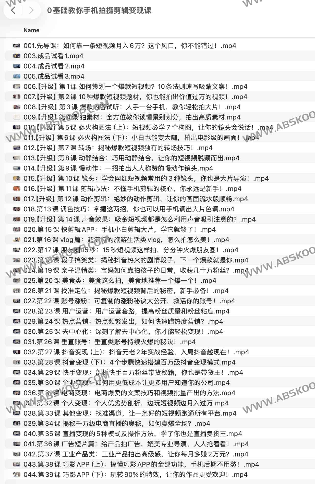 课程地址:0基础教你手机拍摄剪辑变现课