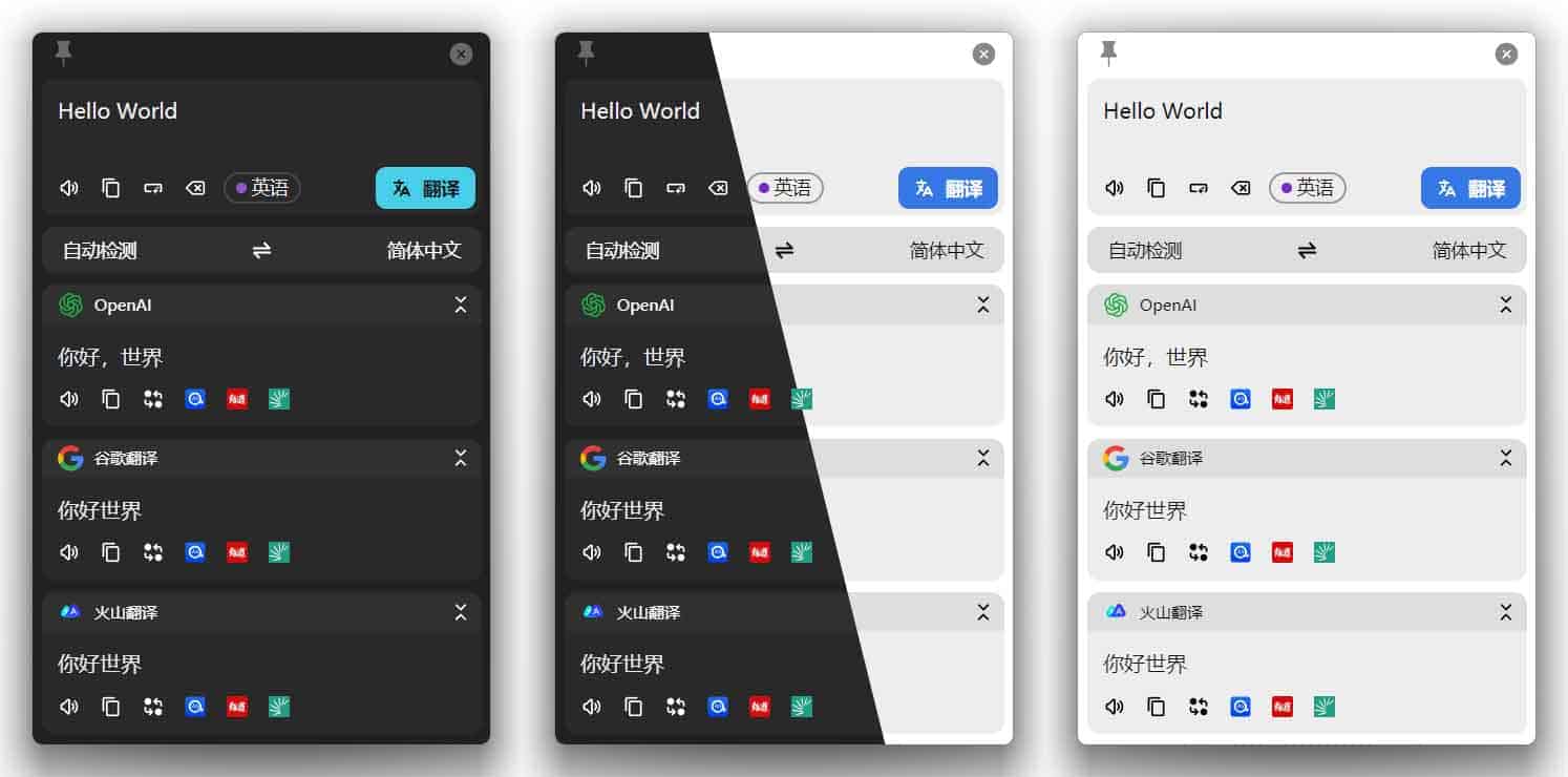 - 鼠标选中文字、快捷键触发即可显示翻译窗口;截图模式可直接框选图片文字实现一键翻译。