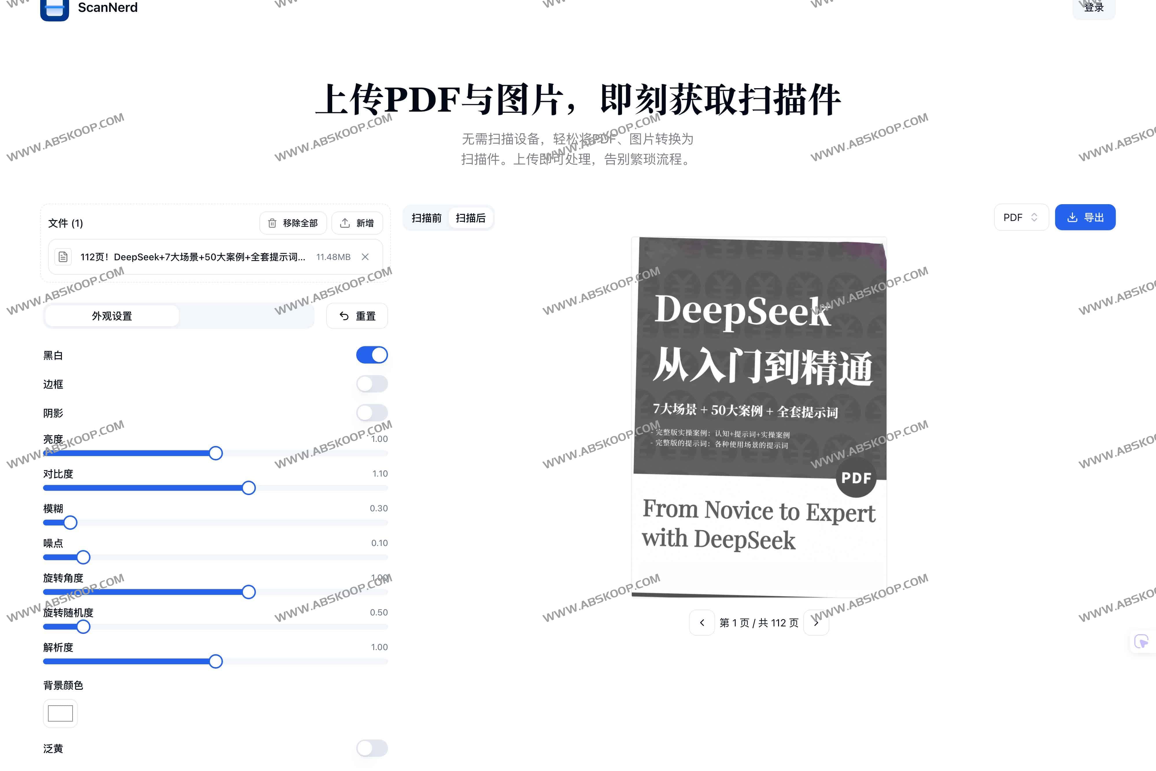 Look Scanned 无需打印机和扫描仪 在线PDF转扫描件