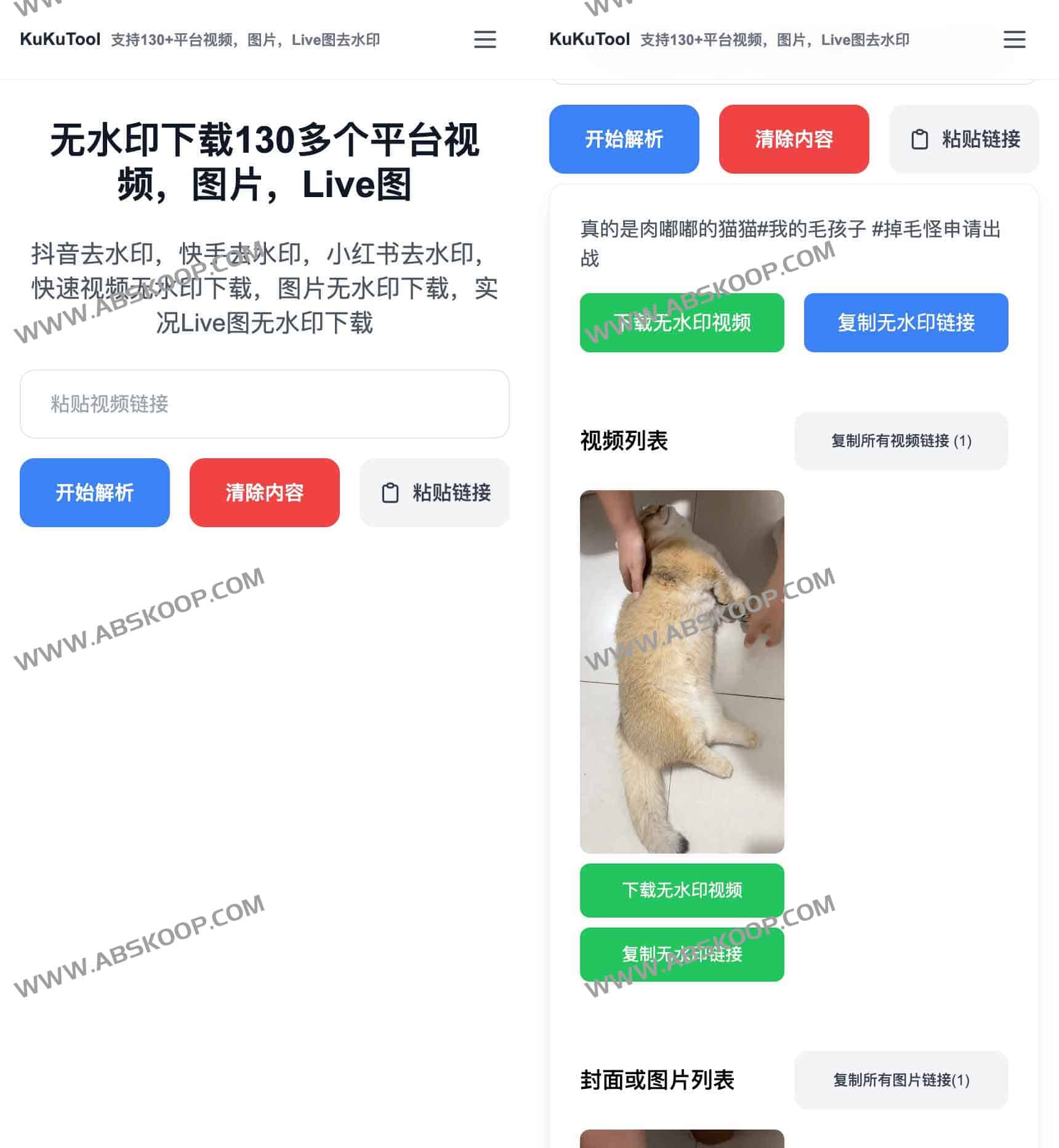 KuKuTool 是一款免费无限制的130+平台视频图片水印去除工具,面向短视频与图片创作者的在线去水印平台,覆盖 TikTok / 抖音、快手、小红书、微博、B 站、Instagram、Facebook 等 130 + 热门站点,支持视频、图片与实况 Live 图一键解析并保持原画质下载,且永久免费、无限次数使用。