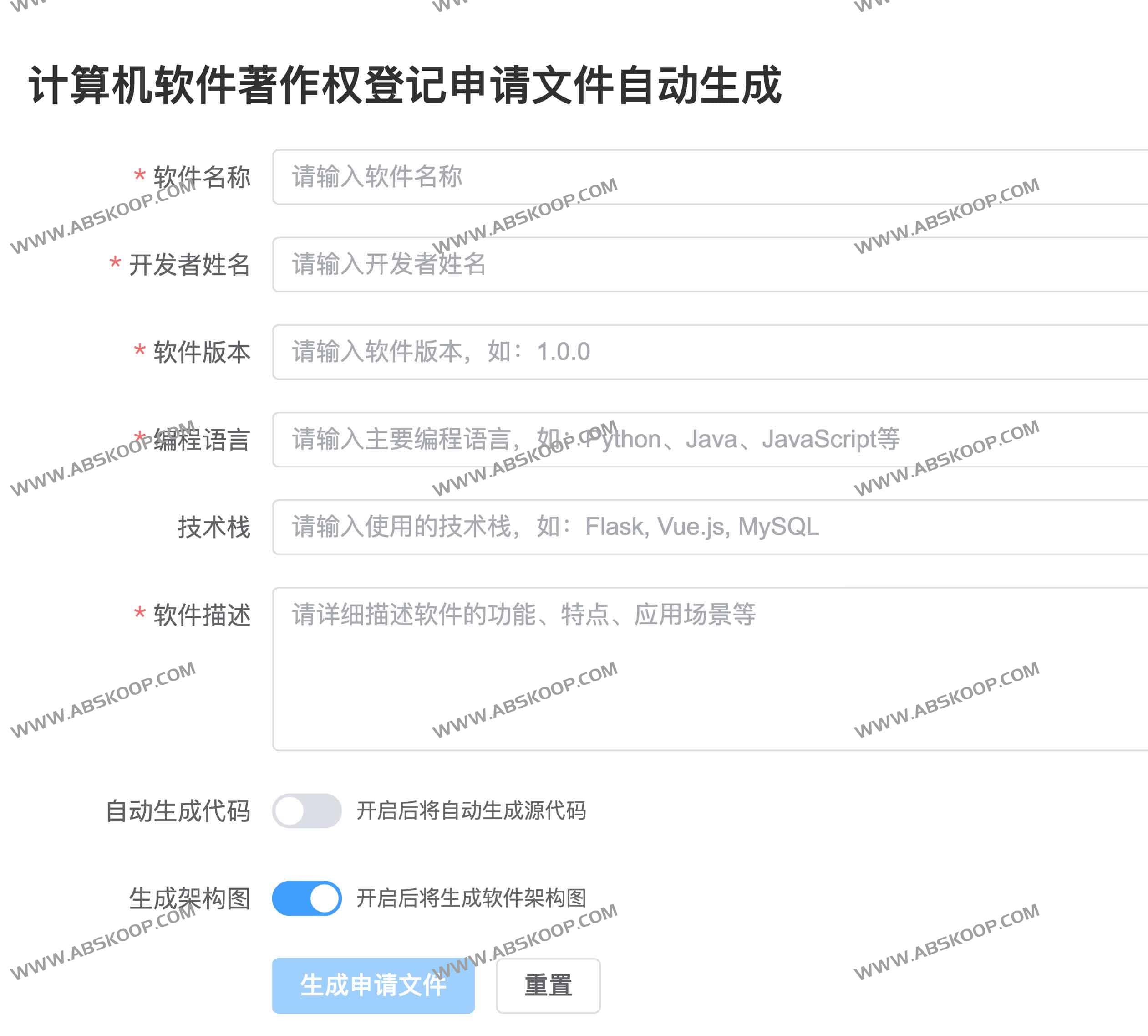 这个平台为想快速合规提交软件著作权申请的开发者提供了极具效率和便利的解决方案。只需填写基本信息,就能获取完整、一致、可递交的官方材料,免去了繁琐格式准备过程。