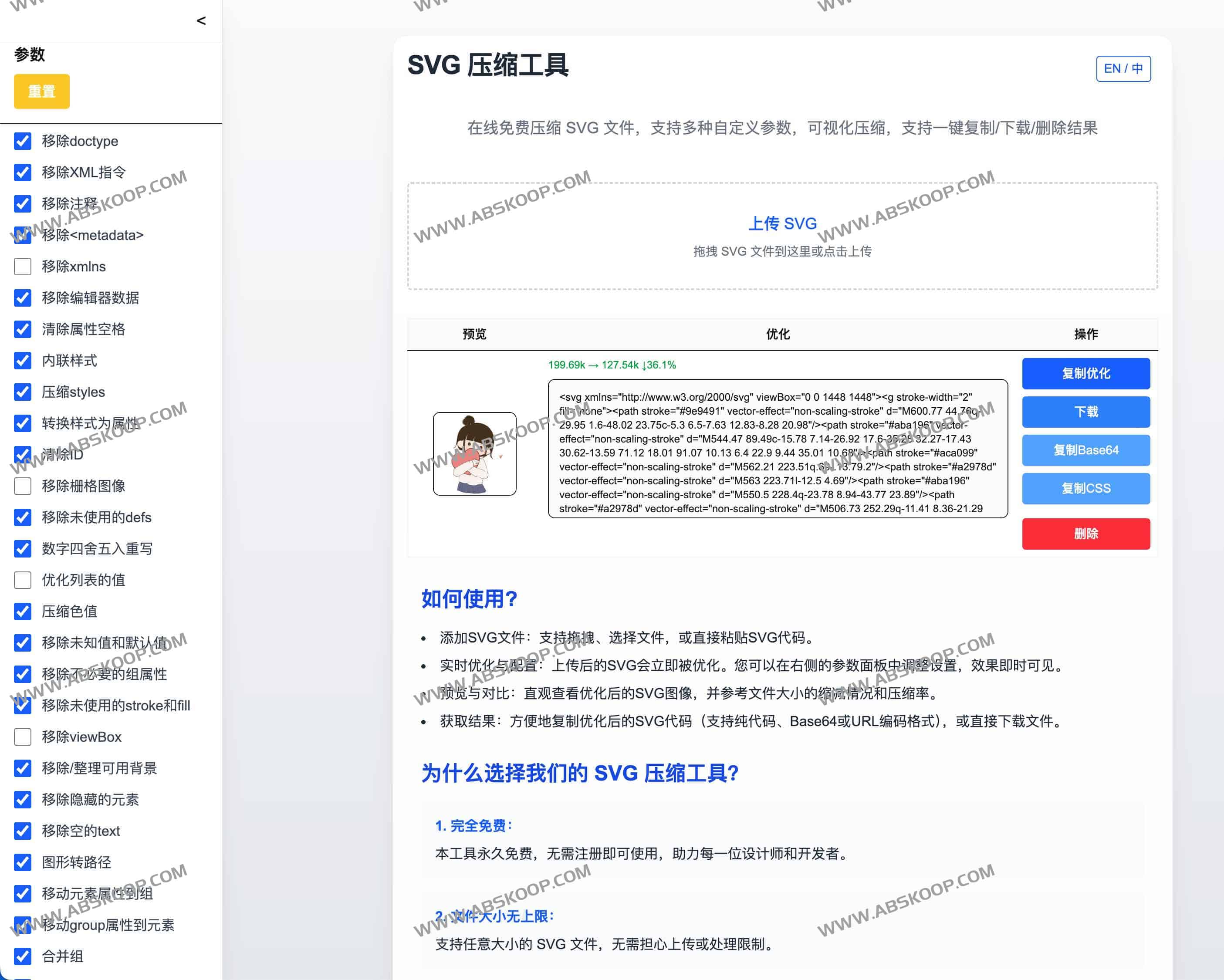 官网地址:https://svg-optimize.com/zh