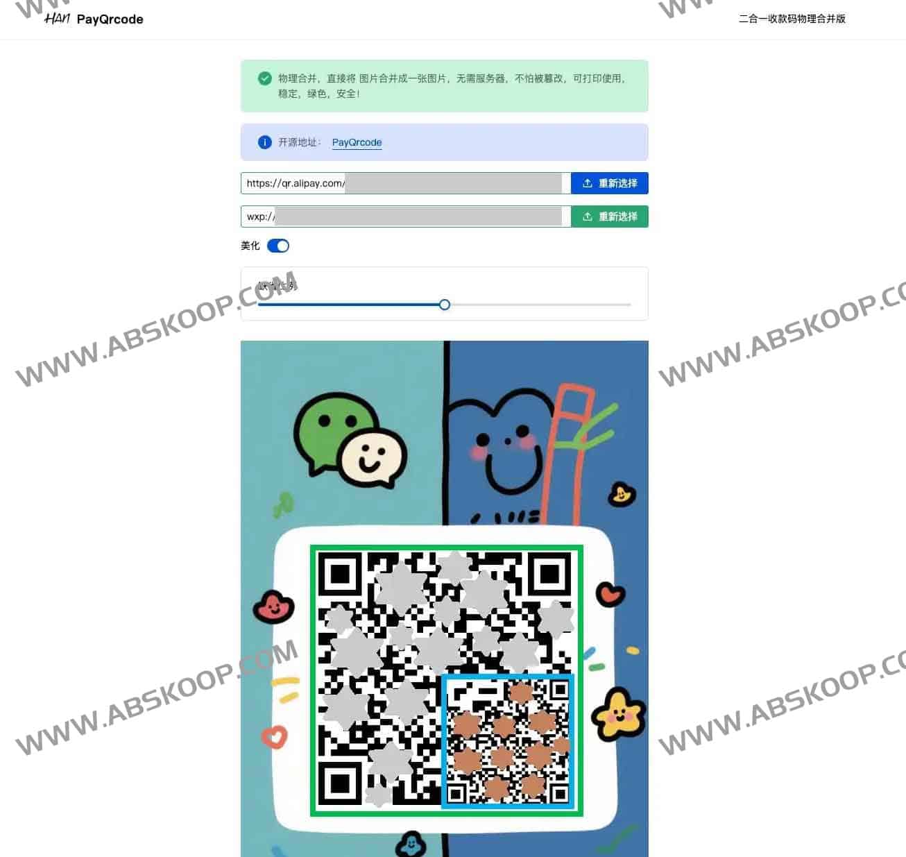 PayQrcode 是一款开源聚合收款码工具,能够将微信收款码与支付宝收款码融为一张图片,彻底摆脱 UA 判断跳转的老路,让实体店、海报或地摊在无网环境下也能一次扫码完成付款。方案依赖 H 级 30 % 纠错率与像素级叠加,不需要服务器或 API 支撑,只要打印出来即可长久使用。