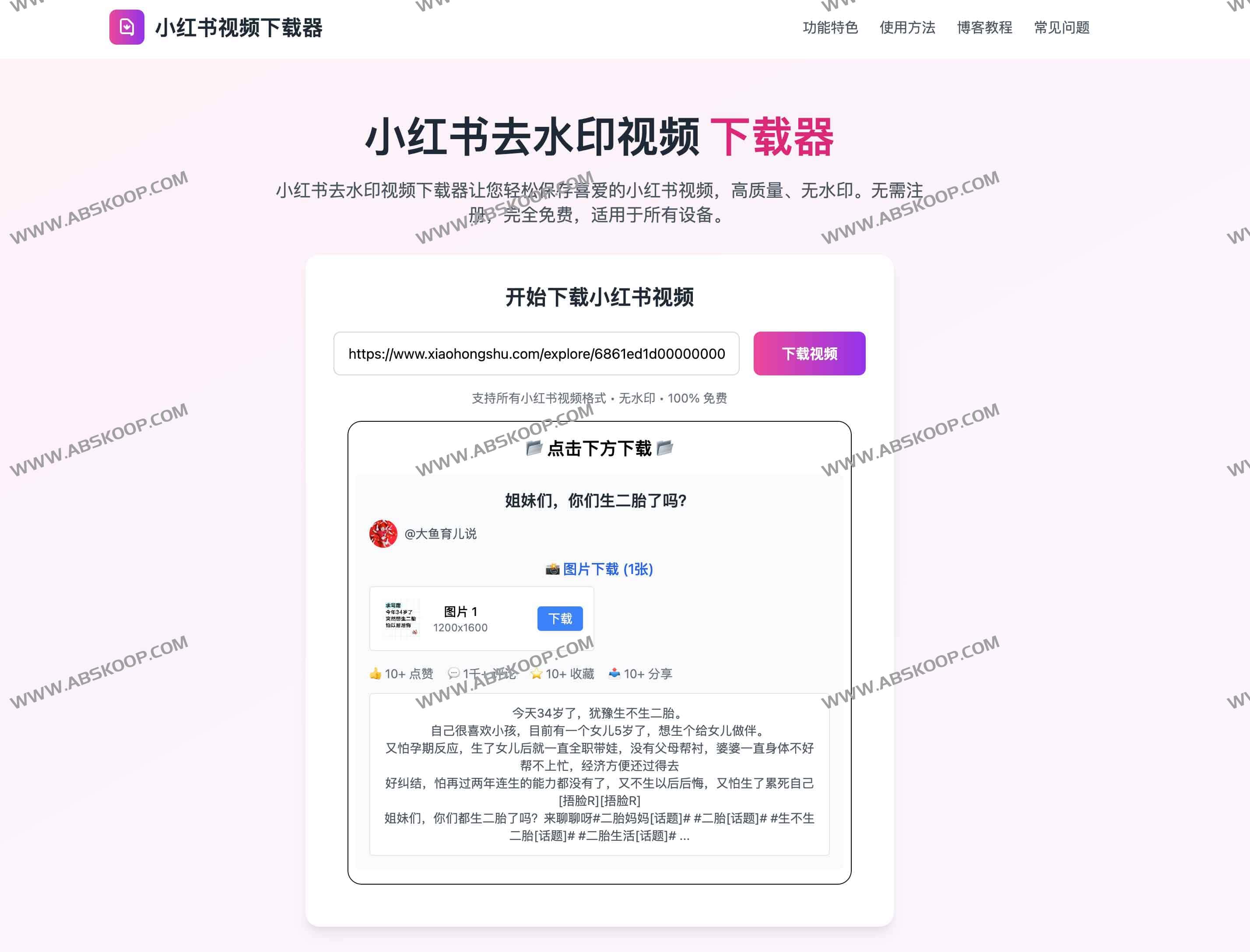 小红书去水印视频下载器地址