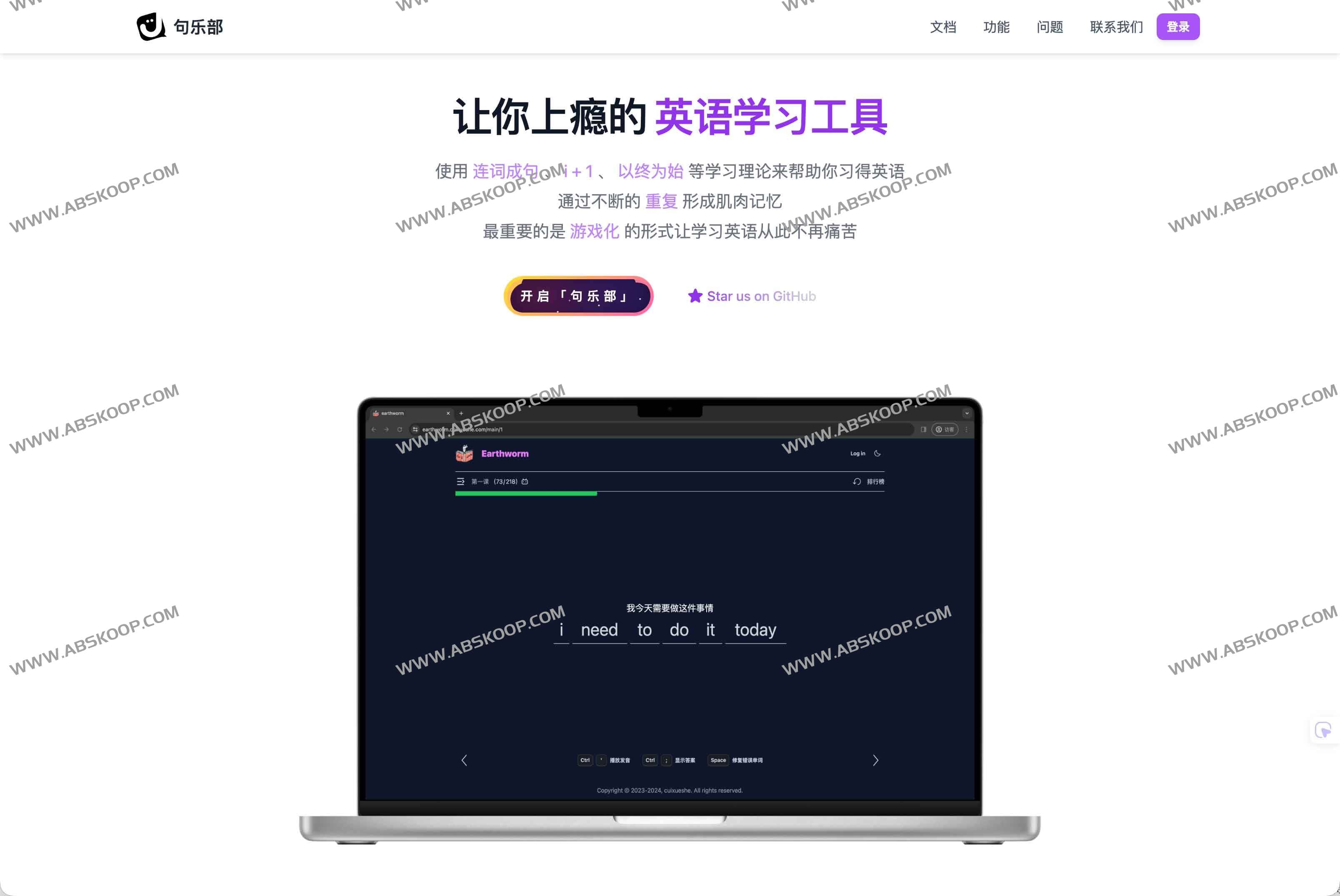 句乐部是一款让学习者欲罢不能的英语学习工具,科学方法告别死记硬背,工具结合“连词成句”、“i + 1”与“以终为始”等科学学习理论,通过游戏化闯关与海量重复练习,帮助用户迅速掌握核心词汇、口语流利度和地道表达。无论是中小学生日常学习,还是四六级、考研、雅思、商务英语等考试与职场需求,都能在这里体验高效而富有趣味的学习过程。