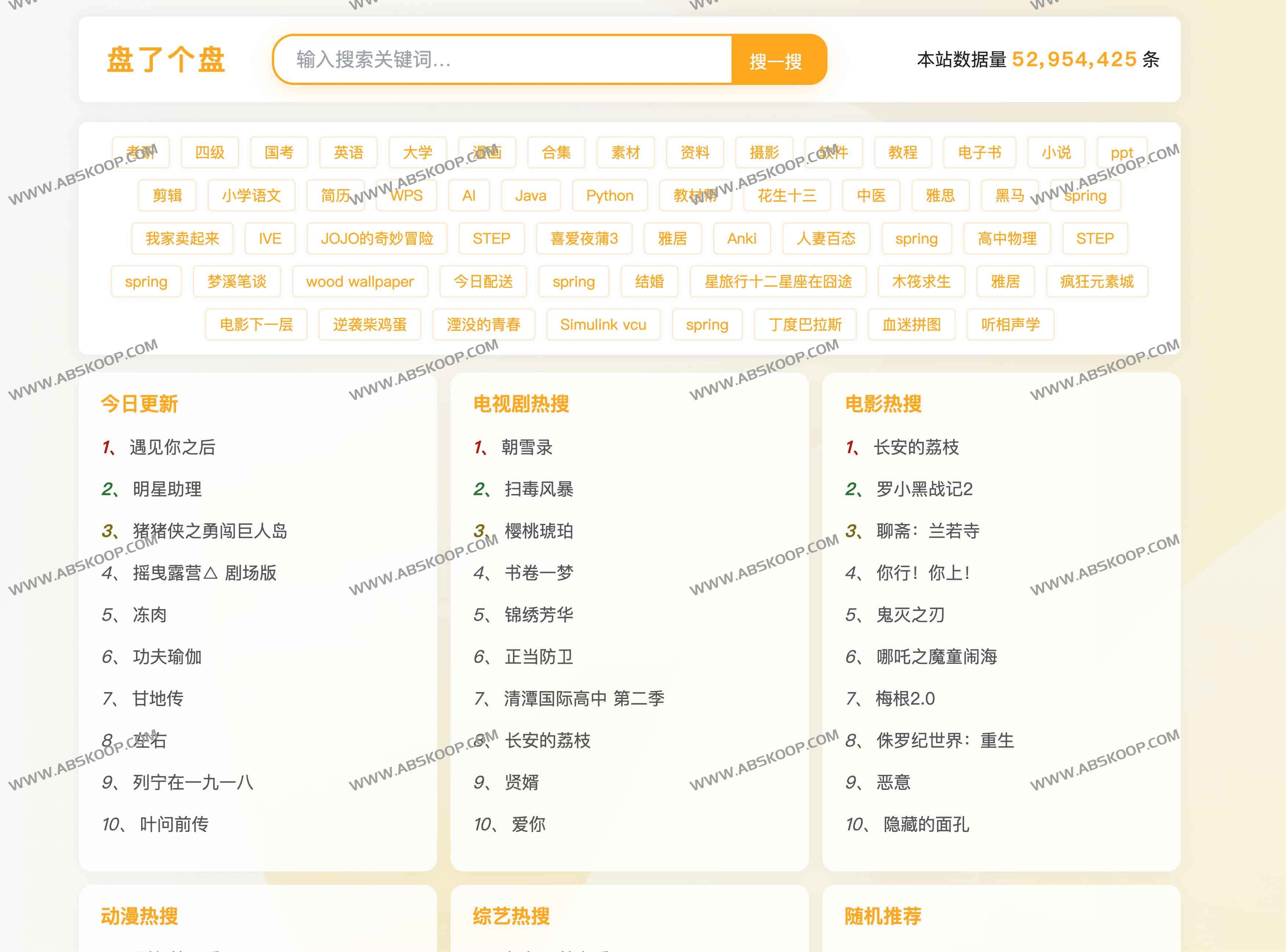 盘了个盘是一款专注于云盘资源聚合检索的在线工具,整合阿里云盘、夸克网盘、百度网盘、蓝奏云盘、迅雷网盘、天翼网盘与彩和网盘等多家平台的公开分享链接,向用户提供免费、快速且无广告的资源检索服务。无需反复切换工具,一次搜索直达多平台资源库,无需注册或登录,即刻体验大规模资源库的极速检索,为用户节省寻找和比对多个网盘链接的时间。