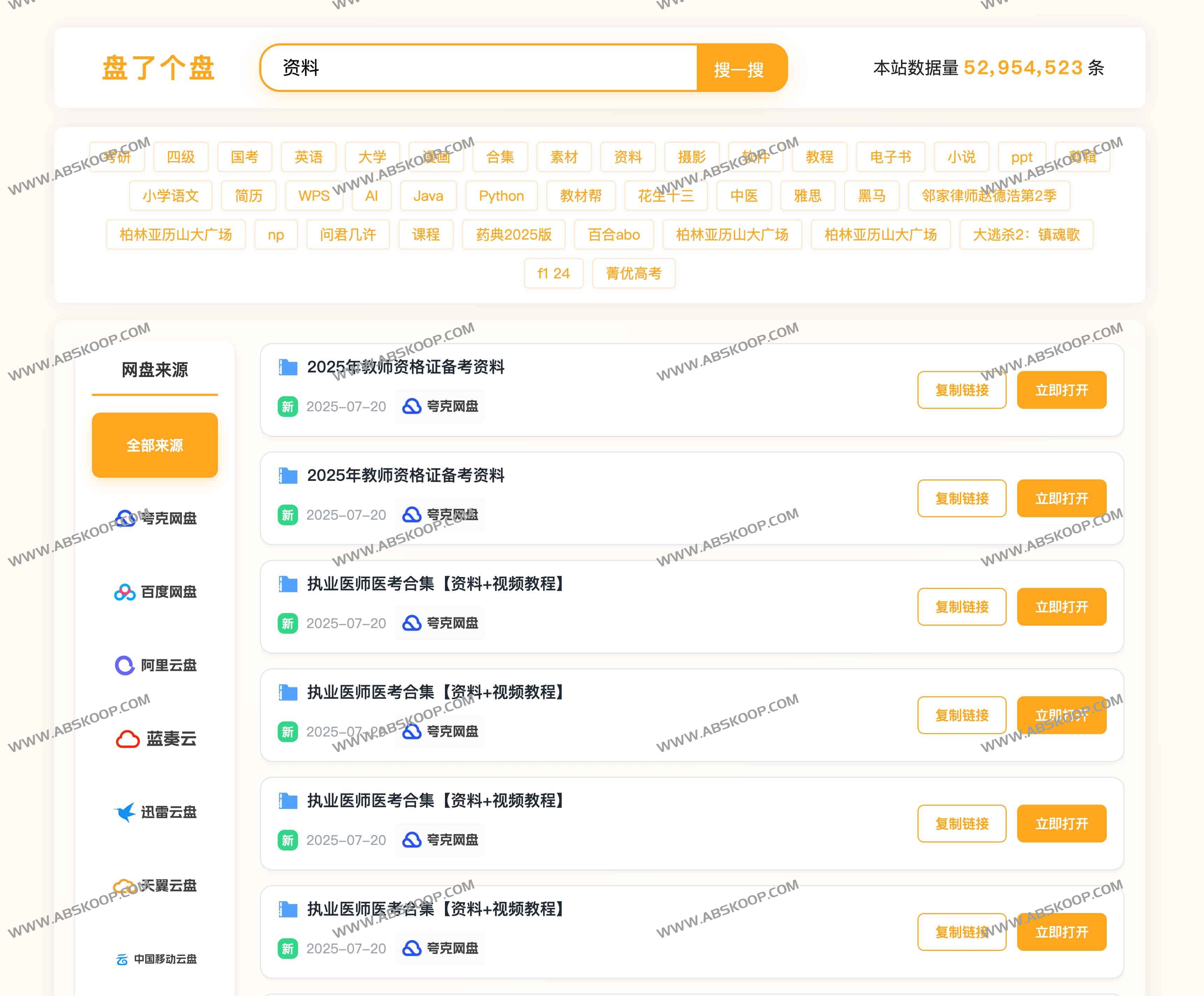 - 标签页显示同一资源会同时列出阿里、夸克、百度等多源链接,保证可用性与下载速度。