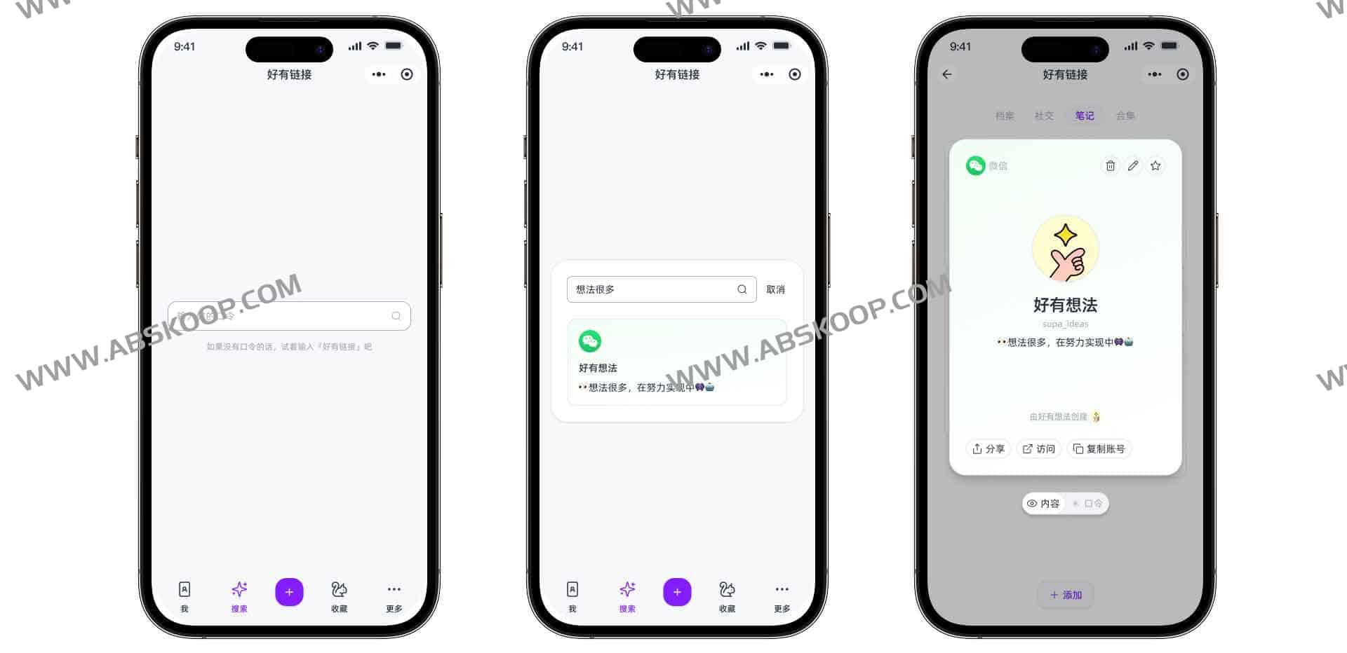 好有链接数字名片是一款基于微信小程序的社交工具,为用户提供多身份名片管理和中文口令分享功能。每个社交身份都能拥有独立的电子名片,可绑定微信、微博、小红书、LinkedIn 等账号,以及图文、作品集等内容卡片。在不同社交场景中,只需挑选合适的身份卡片进行分享,无需重复介绍,帮助他人快速了解你。