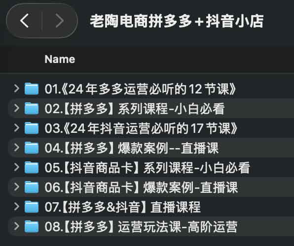 老陶电商拼多多+抖音小店课程,课程涵盖拼多多与抖音两个主流电商平台的基础入门、爆款案例实战和高阶双平台运营,既适合零基础新手,也能满足追求实操提升的进阶学员。