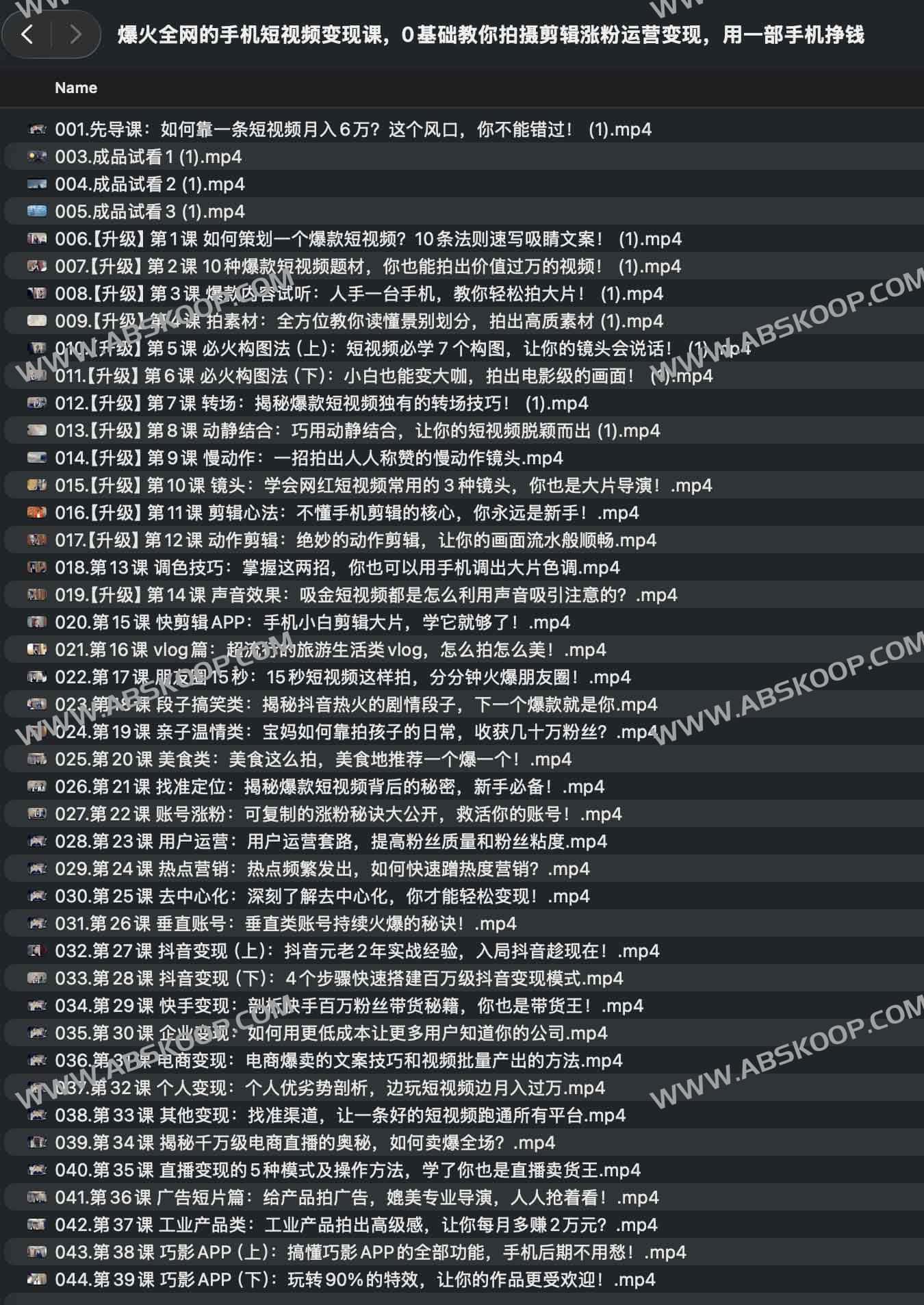 爆火全网的手机短视频变现课程概况