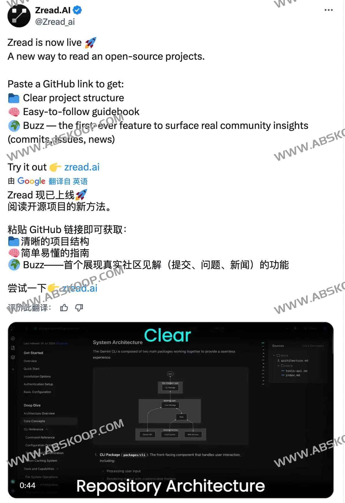 借助 Zread.AI,开发者终于可以摆脱“先翻 README 再满仓搜索”的低效模式,让 AI 替你梳理结构、整合社区动态,再把时间投入真正的创新。