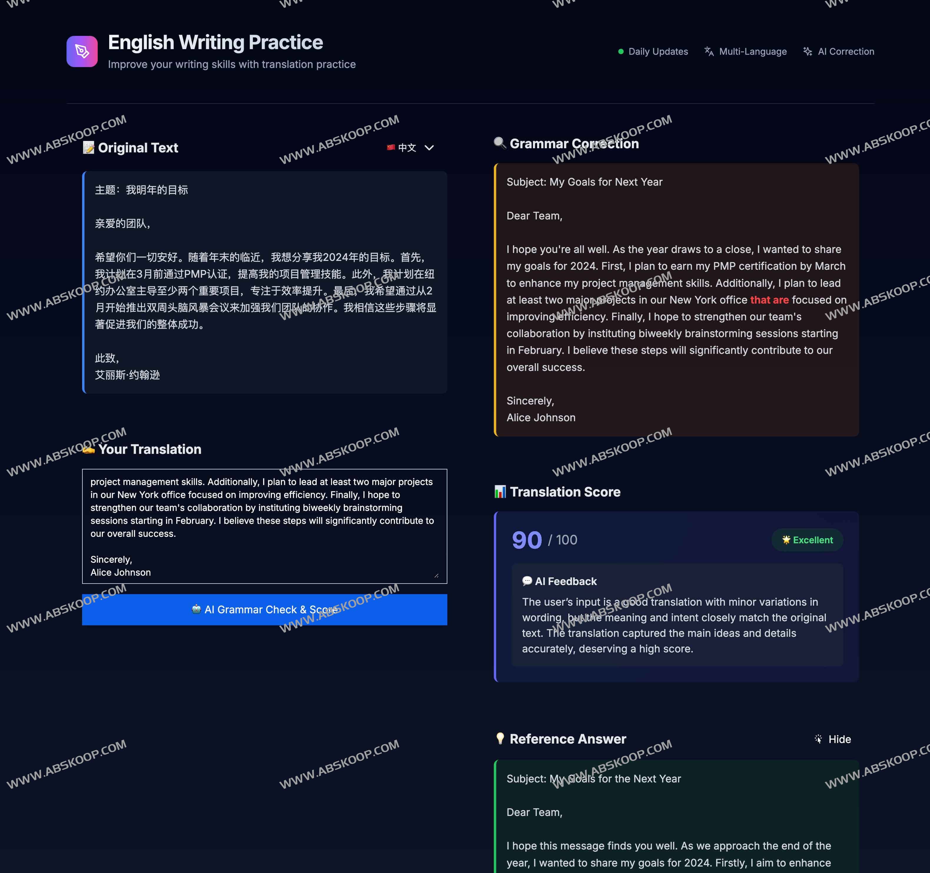 通过 AI 技术与每日新内容的结合,English Daily 让英语学习者能在真实语境中不断试错、修正、再输出,逐步构建流利而自然的语言能力。