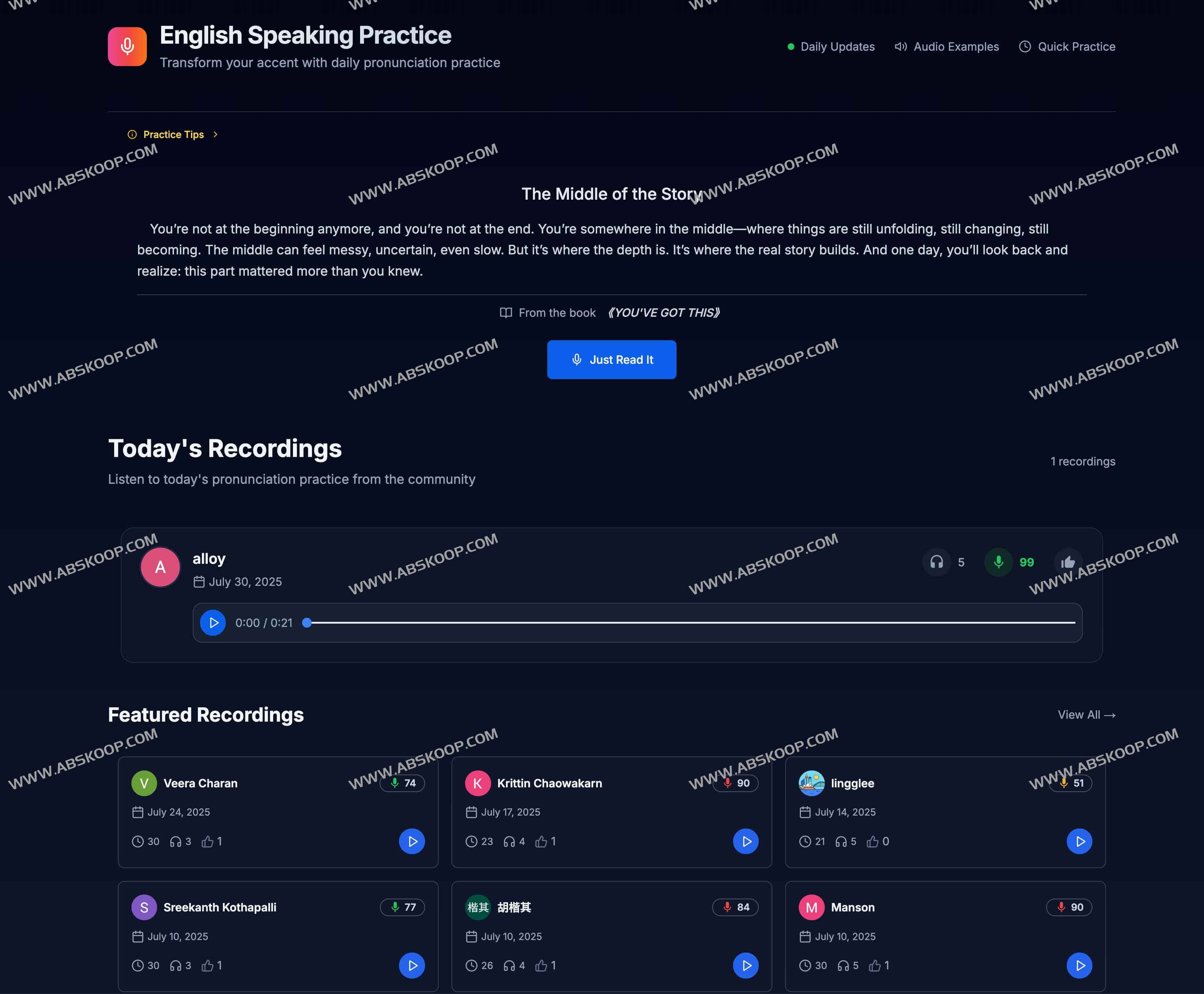 口语练习可重复朗读平台提供的短段落,关注AI评分反馈中的具体发音细节