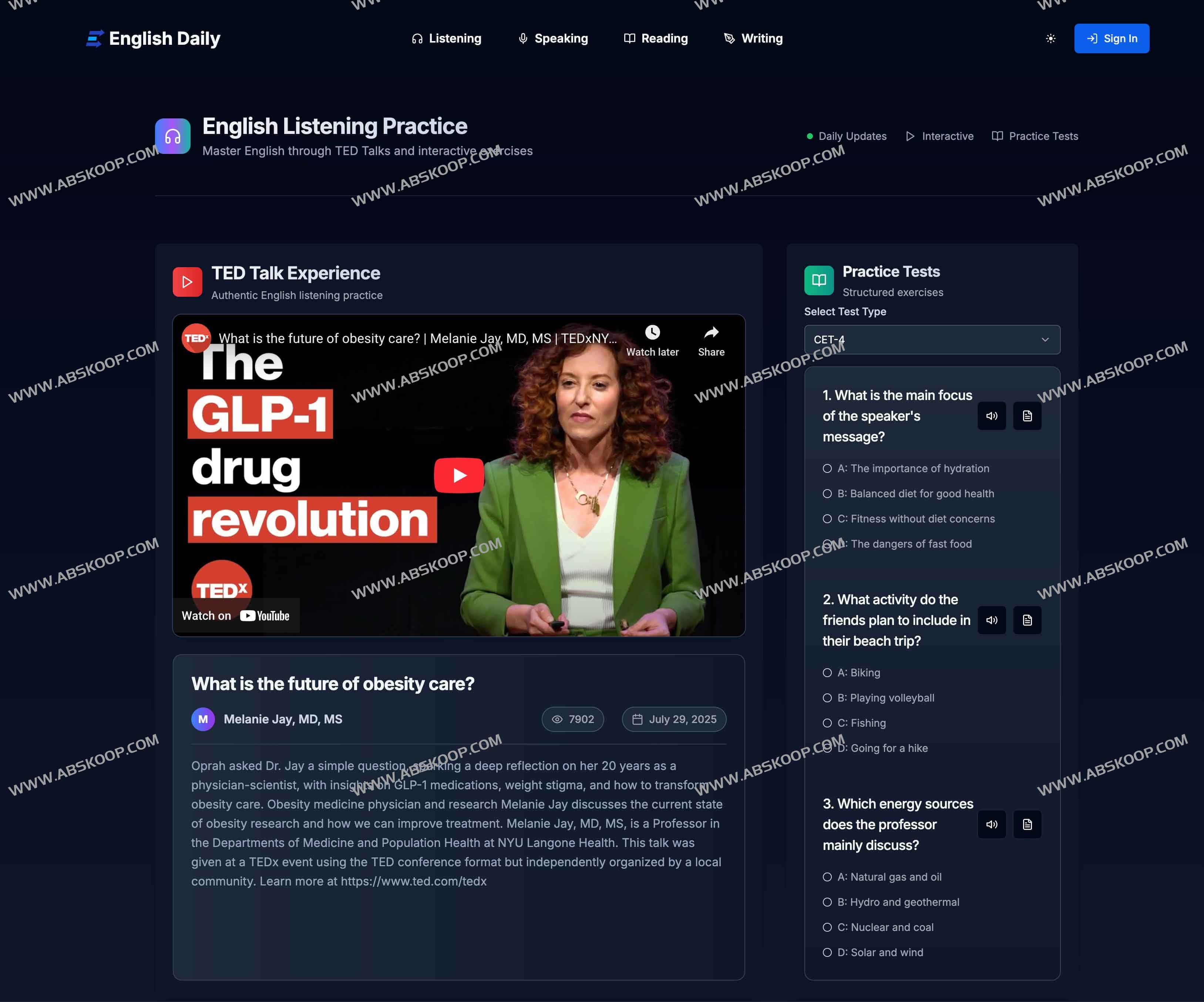 选取经典公开演讲,帮助用户沉浸式提升听力理解