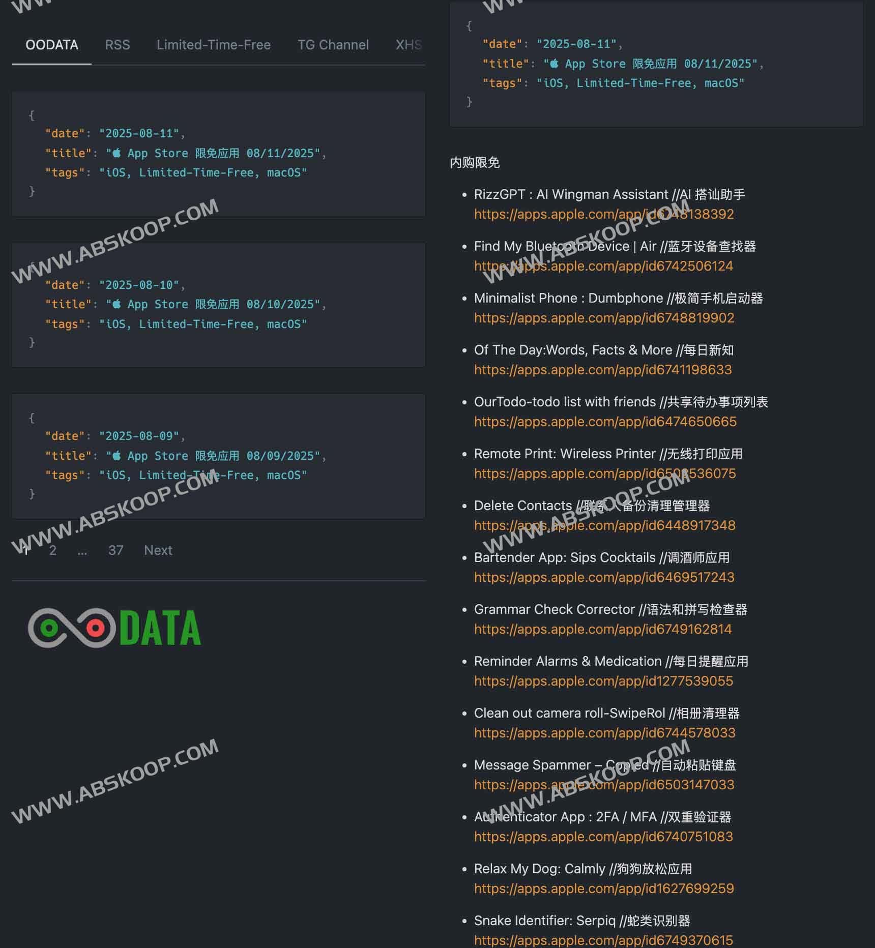 OODATA.NET 是一个专注于收集 iOS 和 macOS 平台限时免费应用资源的网站,提供最新的 App Store 限免资讯。创始人因个人兴趣长期搜集限免应用,决定将成果分享给同好者。平台以美区应用为主,同时多渠道收录全球可用的限免资源,绝大多数应用支持全区领取,网站可以查看近几天的限免应用,按日期与标签整理,便于快速筛选与回溯。