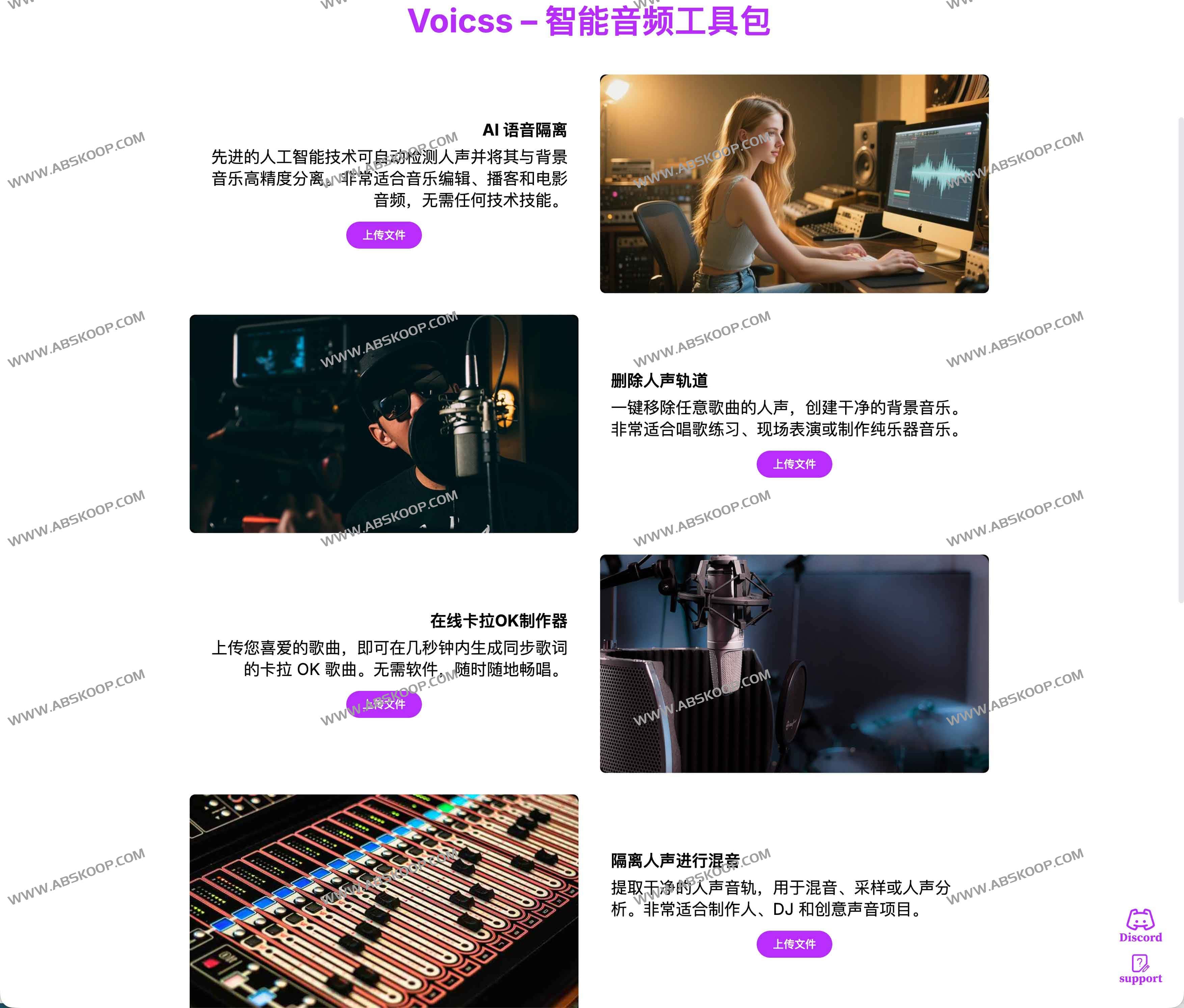 - 在线卡拉OK生成:上传歌曲即可得到“可用于演唱”的伴奏,并宣称支持歌词同步的卡拉OK轨道。