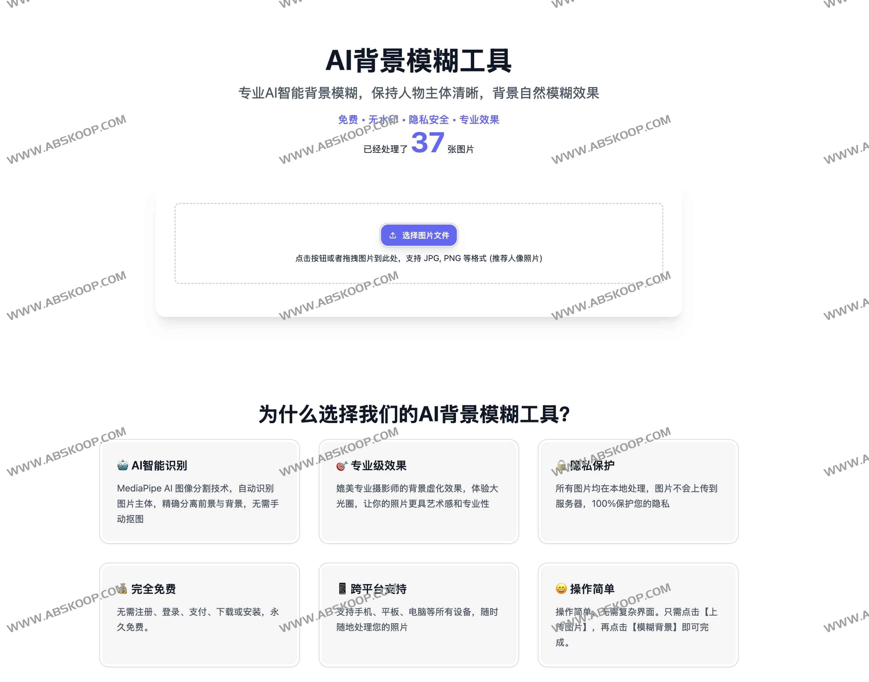 Blur Background是一款AI背景模糊工具,是一款完全免费的在线应用,用户无需注册或下载,即可快速模糊照片背景,突出人物或商品主体。该工具基于 MediaPipe AI图像分割技术,自动识别前景与背景,实现媲美专业摄影的景深效果。