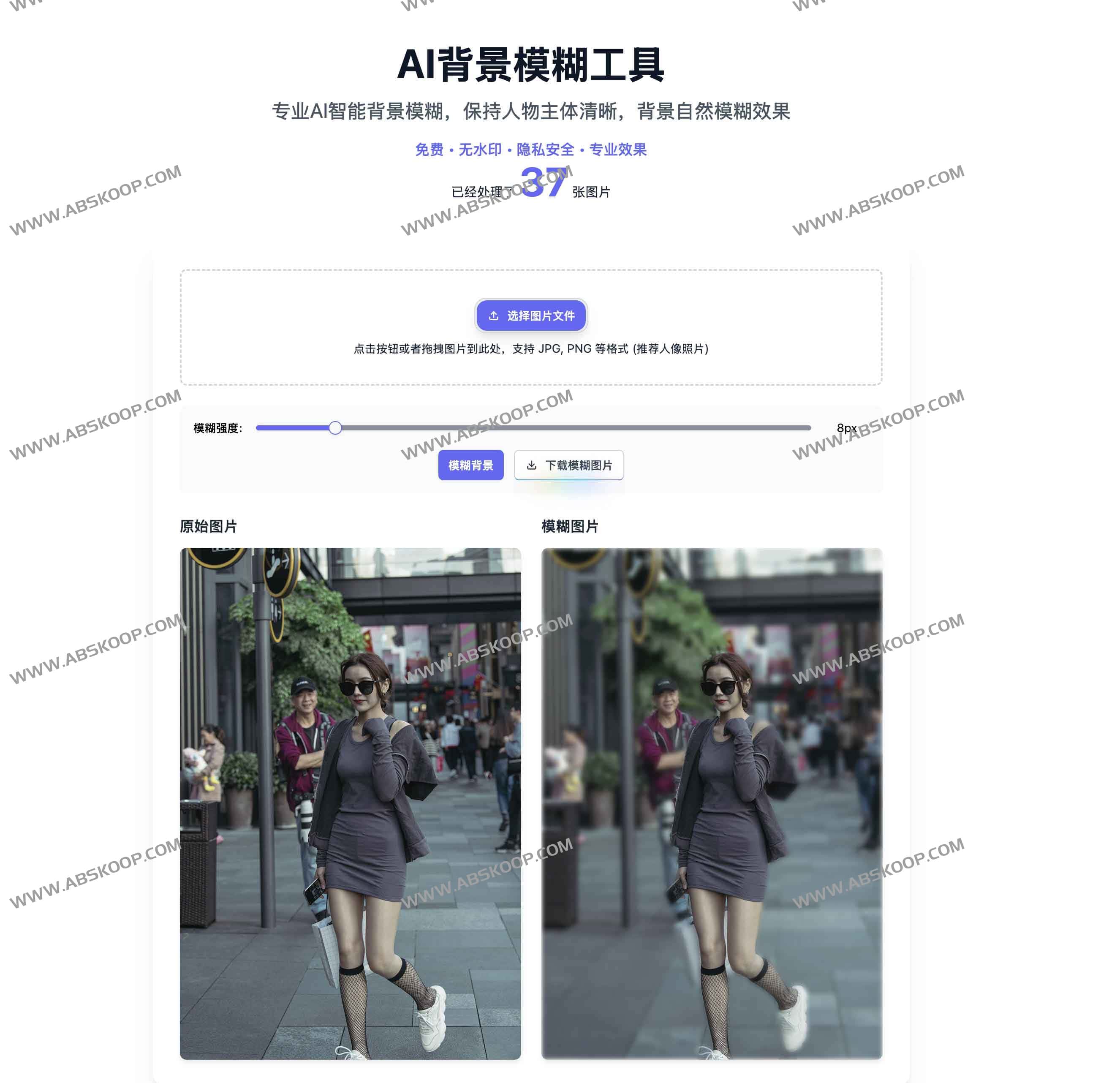 - 😄 操作简单:上传、选择模糊强度、下载即可完成。