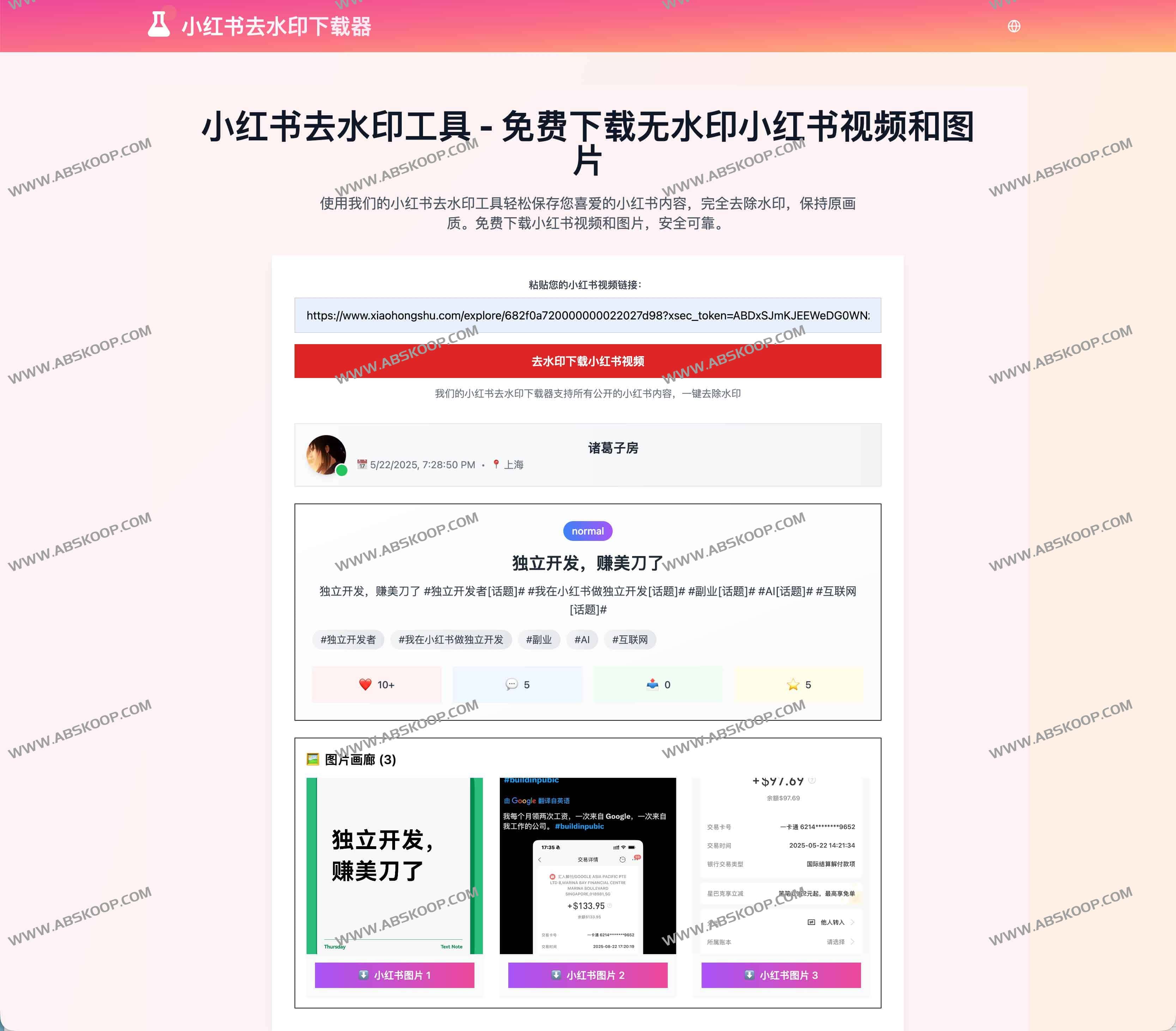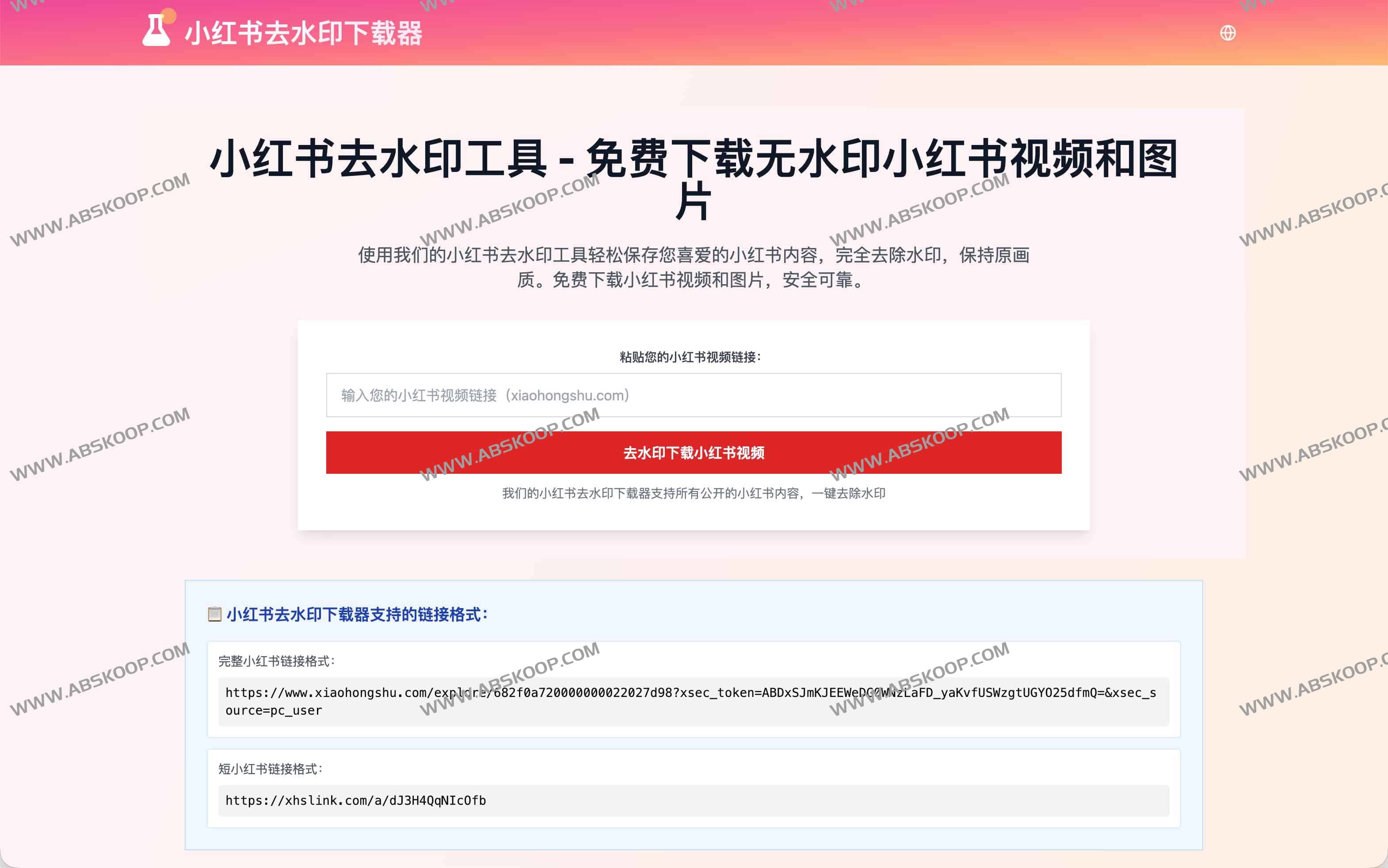 小红书去水印下载器是一款免费的在线工具,帮助用户保存小红书上的公开内容,包括视频和图片,并自动去除水印,保持原始高清画质。整个过程无需安装软件,无需注册账号,直接在浏览器即可完成操作,兼容桌面端和移动端设备。访问入口:rednotevideodownload.org/zh
