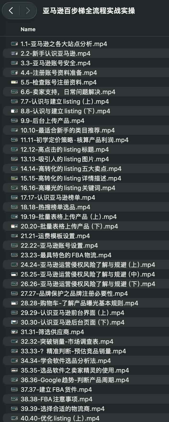 亚马逊百步梯全流程实战实操,本课程是一套系统化的亚马逊开店与运营实战课程,涵盖从账号注册、选品、上架、Listing 优化、广告投放、FBA 物流到站外引流、品牌保护、财务管理与团队搭建的全流程。98 节短时长录播课(每节 5–15 分钟),结合知识点讲解与实操演示,帮助学员快速理解规则并掌握落地技巧。