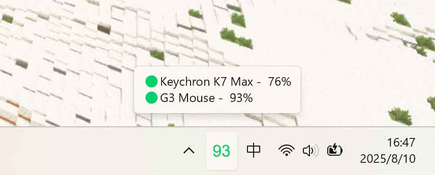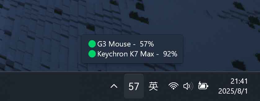 - 托盘图标电量显示:可直接在托盘图标上显示设备电量,支持系统字体和自定义图片两种方式。