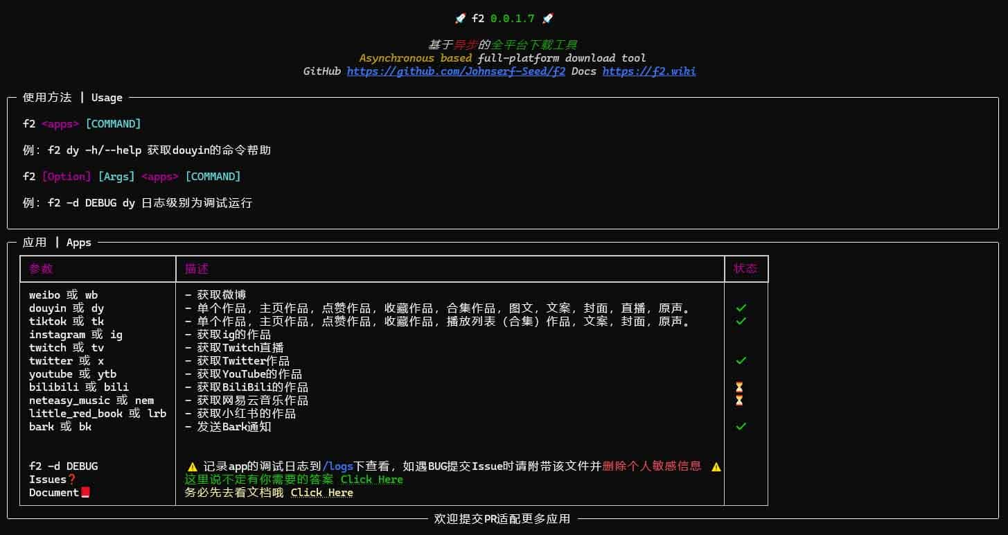 F2 是一款面向多平台的 Python 工具库,用于下载作品与处理接口数据。覆盖 DouYin、TikTok、Twitter、WeiBo 等平台,设计为易于扩展,可适配更多来源。提供 API 与命令行双模式,适合脚本化调用与日常批处理。