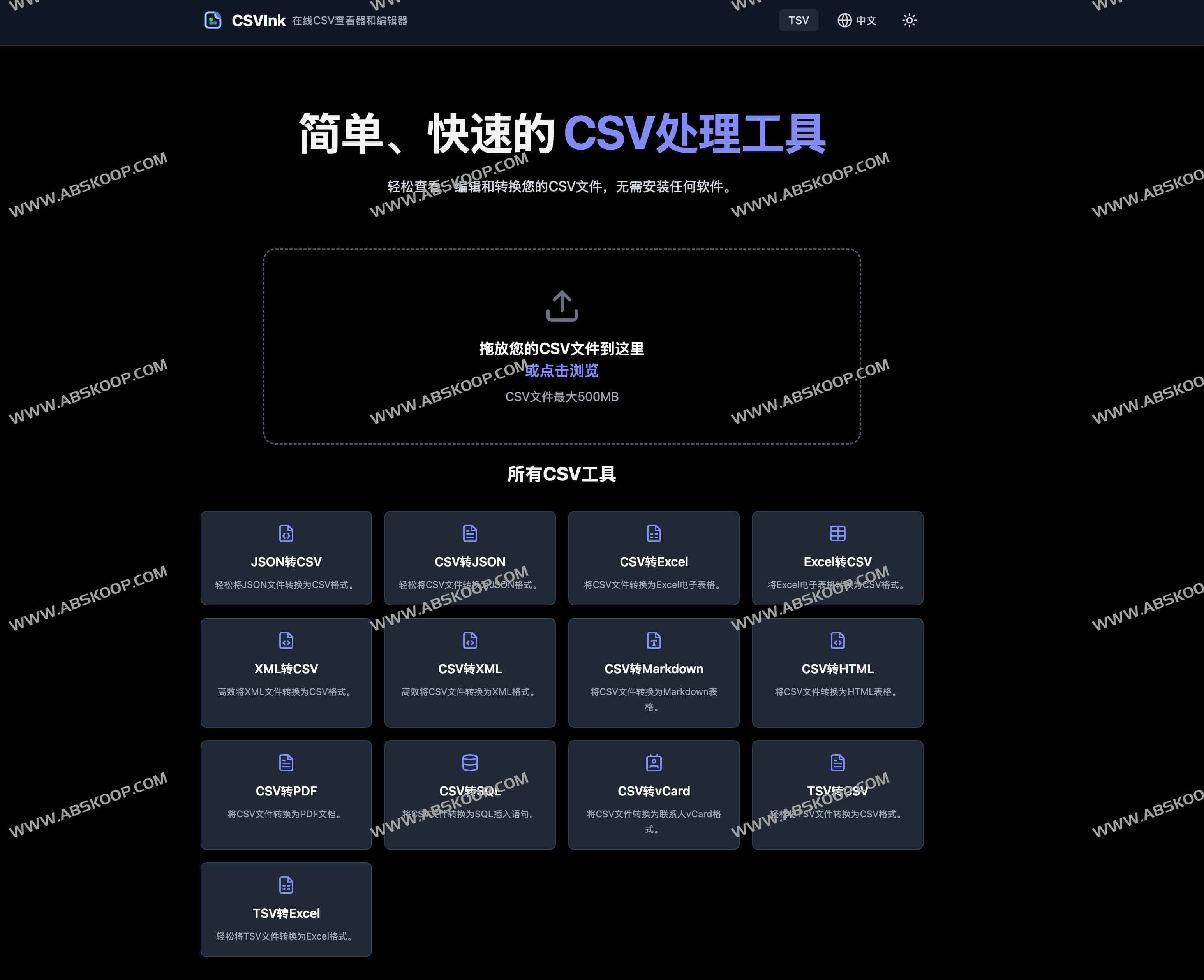 https://csv.ink/ - 拖放 CSV/TSV 文件或点击上传