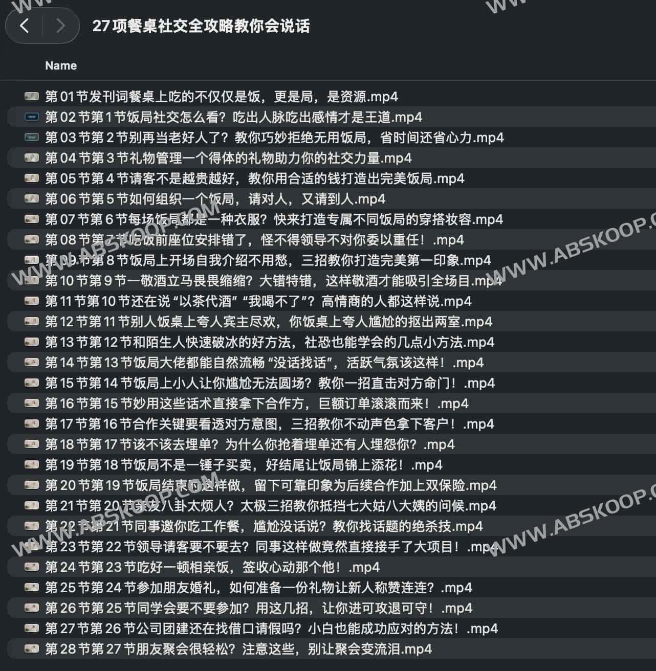 27项餐桌社交全攻略教你会说话,这套27节课程围绕“饭局不仅仅是吃饭,更是人脉与机会”的核心展开。课程帮助学员在餐桌场合中提升情商与沟通力,让每一次聚餐都成为加深关系和拓展资源的契机。