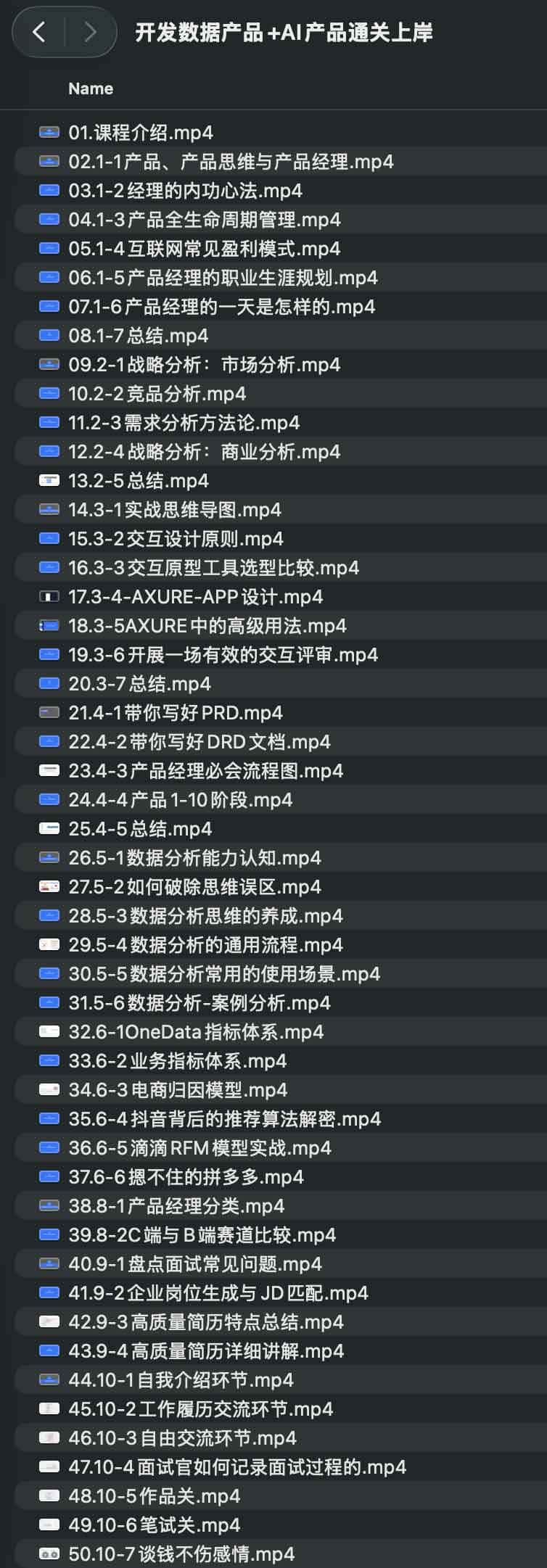 开发数据产品+AI产品通关上岸,本课程系统覆盖了产品经理、数据产品经理与AI产品经理的核心技能,帮助学员从零基础到实战掌握产品规划、数据分析、AI应用和团队协作。内容从产品思维、生命周期管理,到数据驱动运营、指标体系设计、推荐算法与知识图谱,逐步深入,结合案例拆解和实战演练,最终形成完整的知识体系。课程还包含简历优化、面试技巧与职业规划,帮助学员顺利进入互联网和人工智能产品相关岗位。