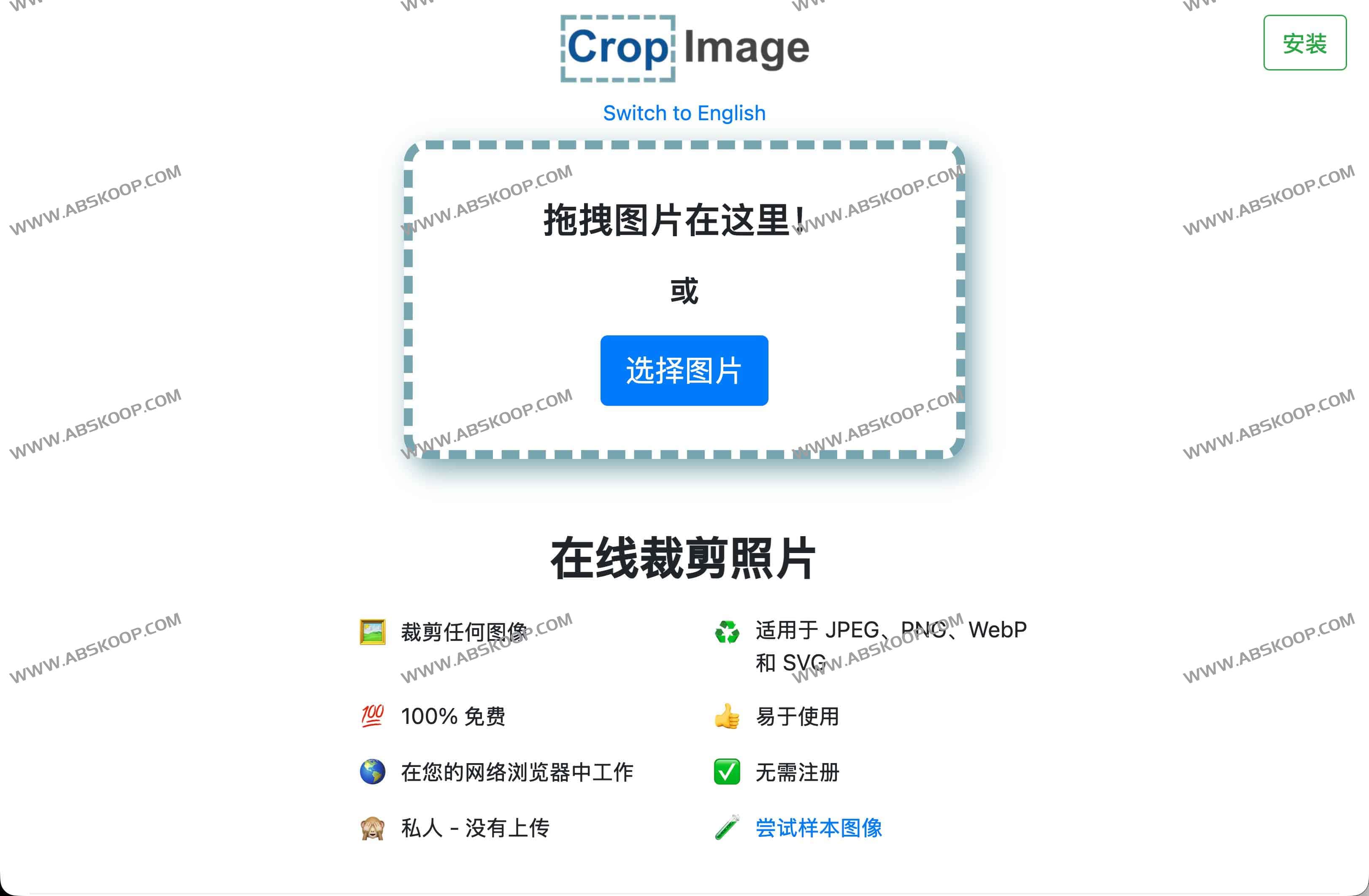 CropImage 是一款完全免费的在线图片裁剪工具,用户无需注册或下载软件,只需在浏览器中打开即可使用。操作过程在本地设备完成,保障隐私安全,无需担心图片上传泄露问题。