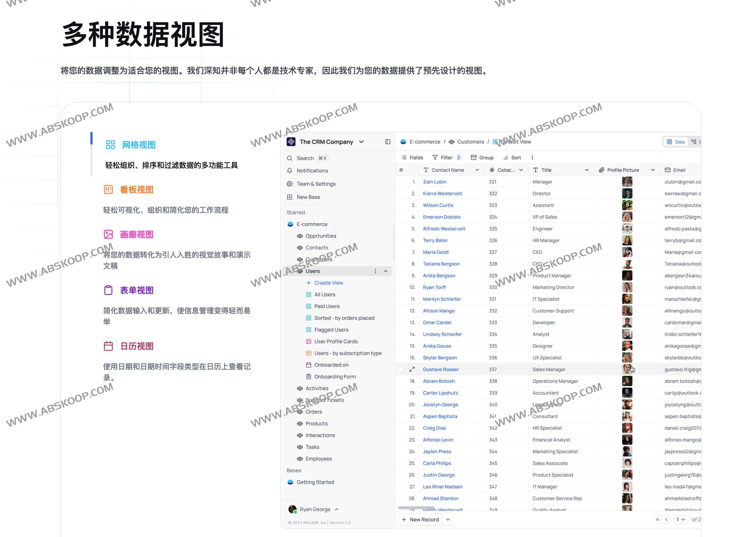 用户既可以自建数据库,也能使用 NocoDB Cloud 云端服务,轻松管理数百万行数据。平台提供网格、看板、画廊、表单、日历等多种视图,实现灵活的数据展示与交互。