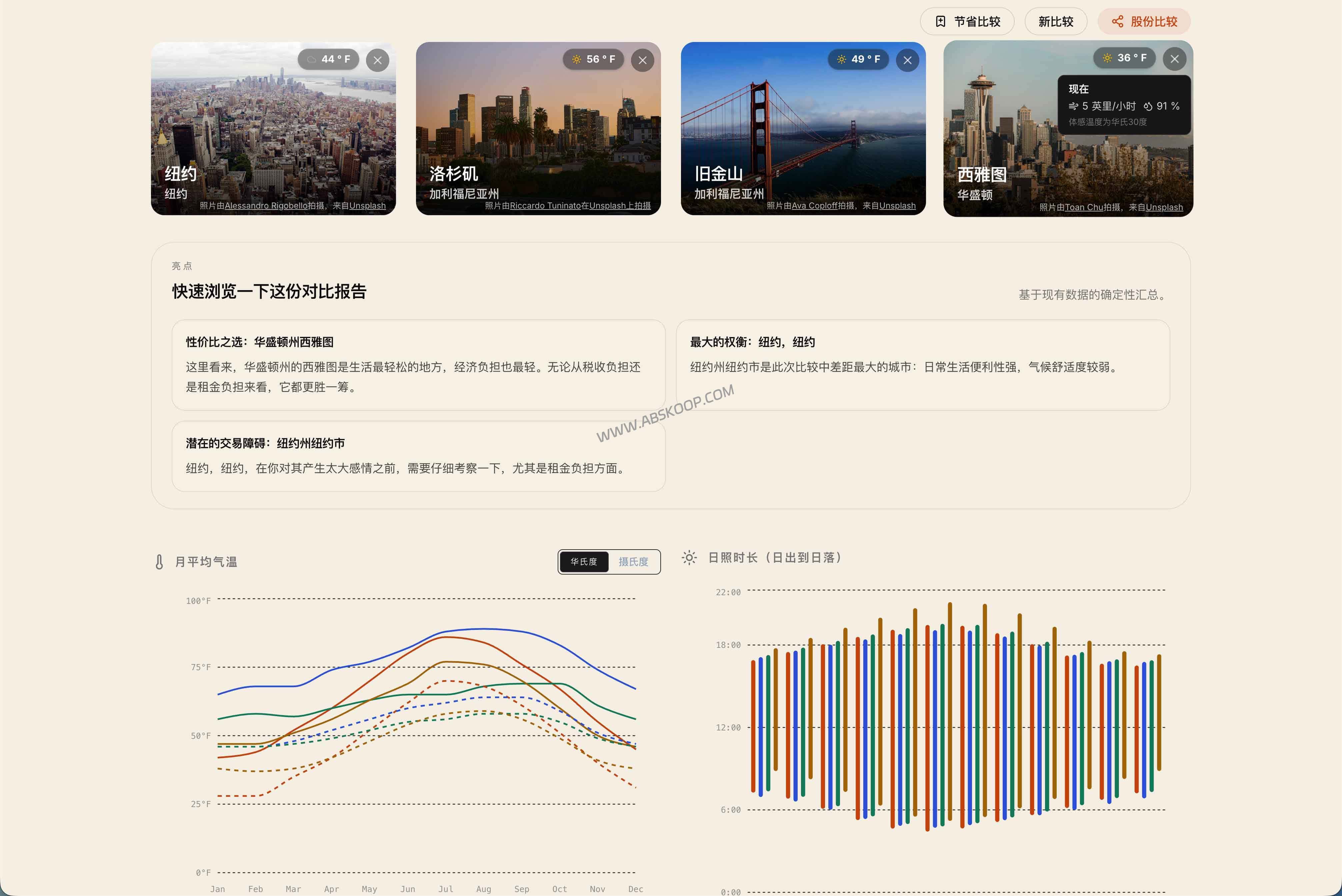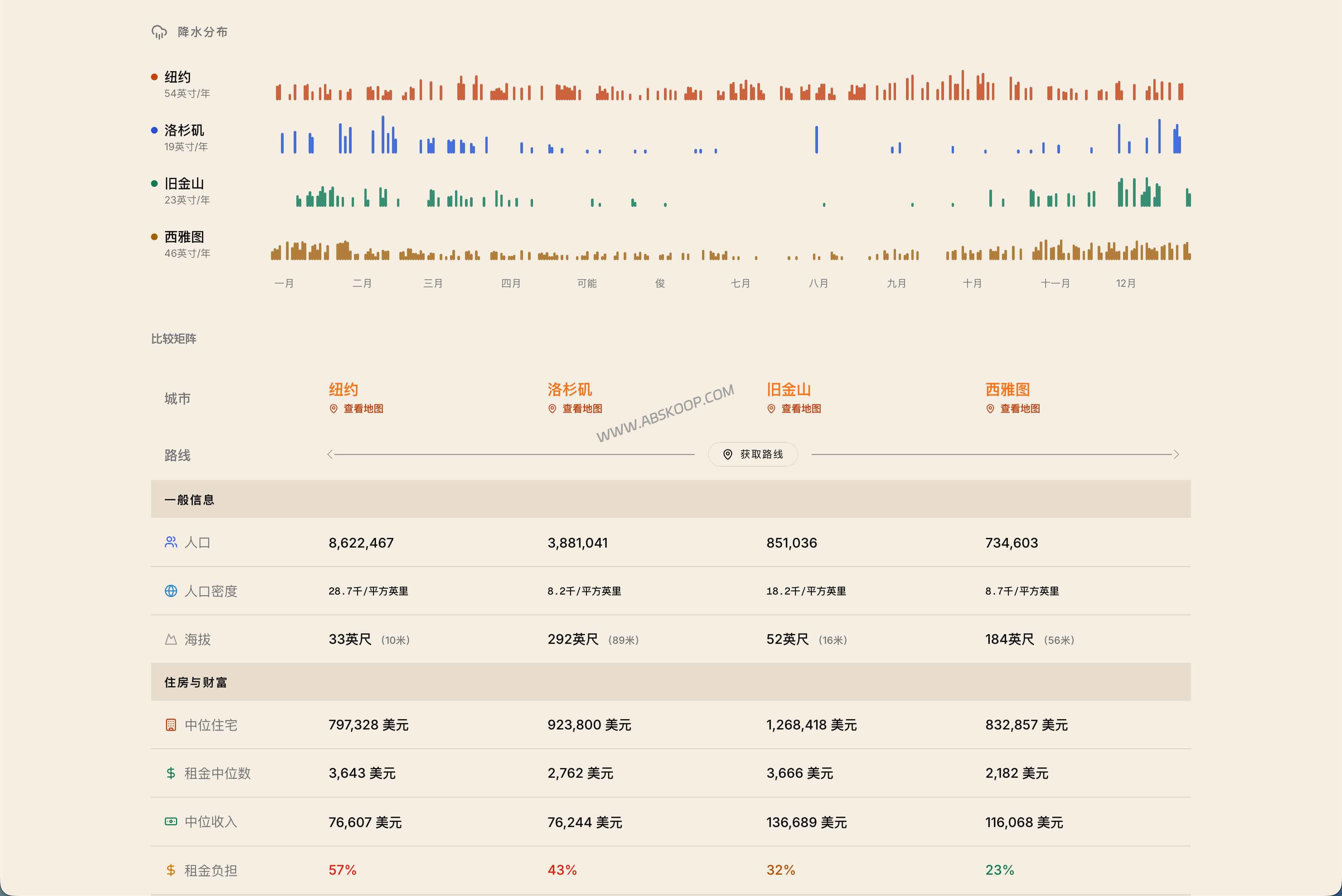 和很多只会堆叠“宜居”标签的内容站不同,WhyThere 的核心思路很实际:少讲感觉,多看数据。你不是来听空话的,而是想知道两个城市放在一起,到底差在哪,享受好天气需要多付多少钱。