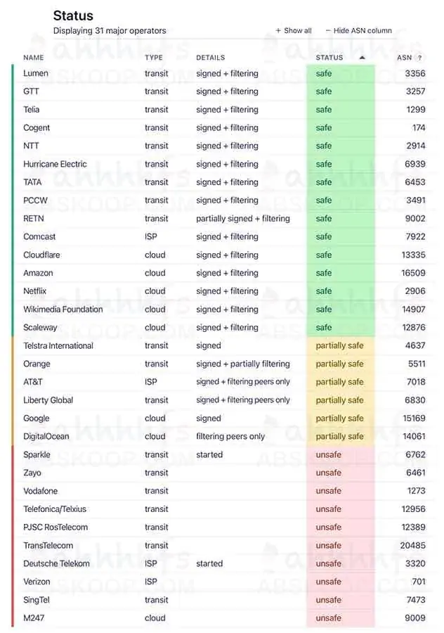 ISP和其他主要互联网播放器(Sprint、Verizon等)需要实施一个名为RPKI的认证系统。