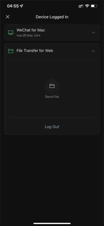 退出登陆也比较简单,可以在手机微信顶栏查看文件传输助手登陆状态,传完文件退出登陆即可。